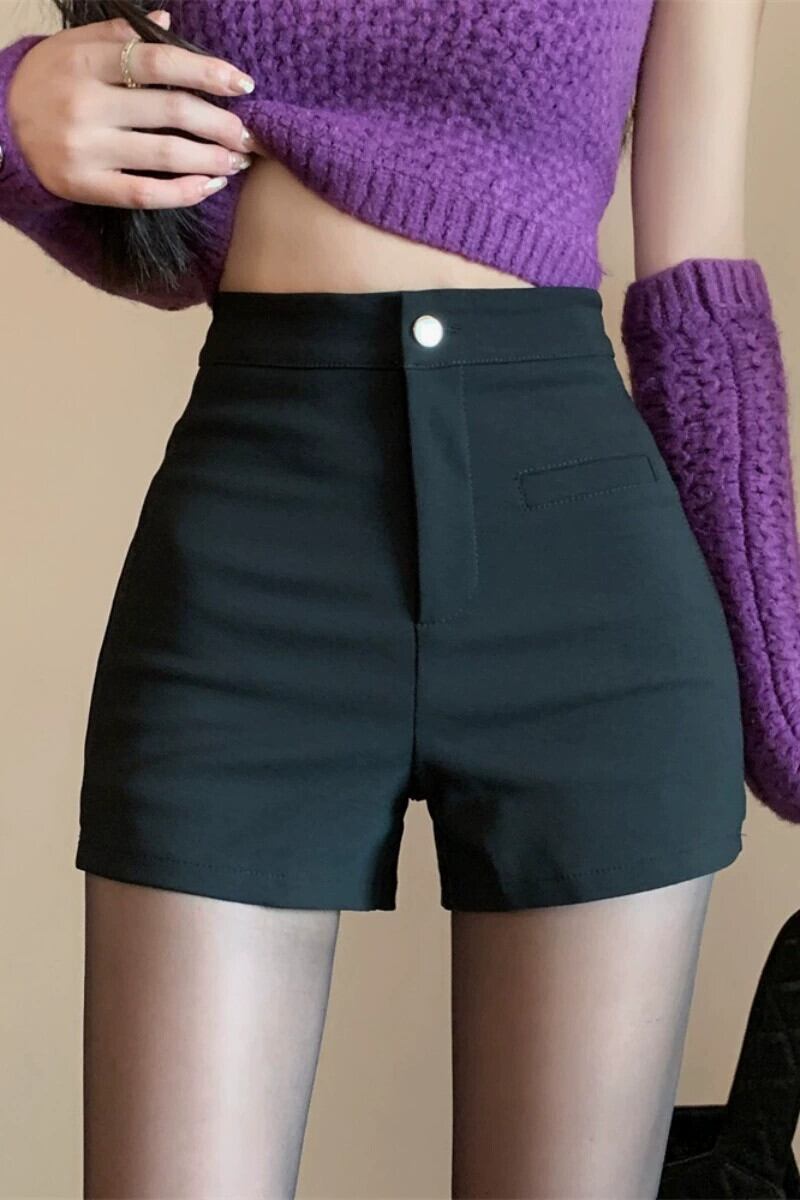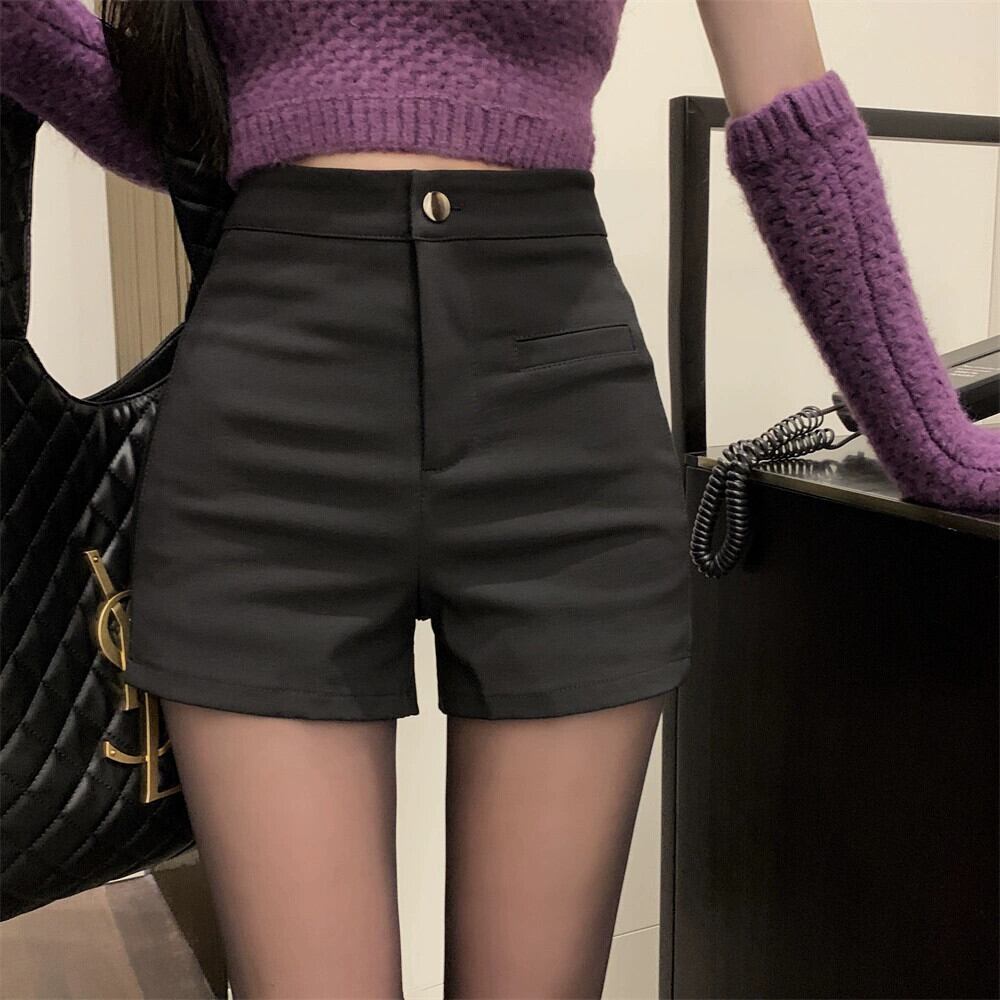 黒のワイドレッグパンツカジュアルパンツアウターウェア弾性ハイウエストストレートスリムスーツショーツレディース秋冬 2023 新しいスタイル ブラック エラスティック 伸縮 オータム 秋物 ウィンター 冬物 ブルマー nana30120610886 | modepoisson