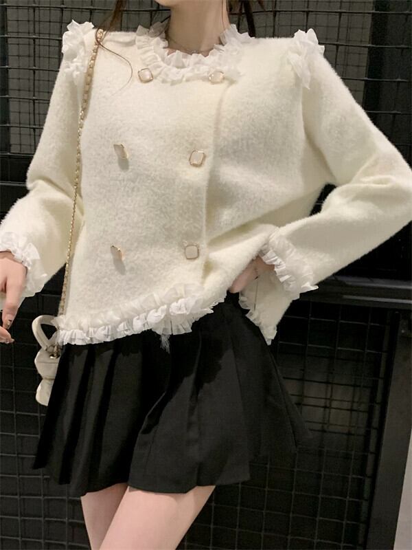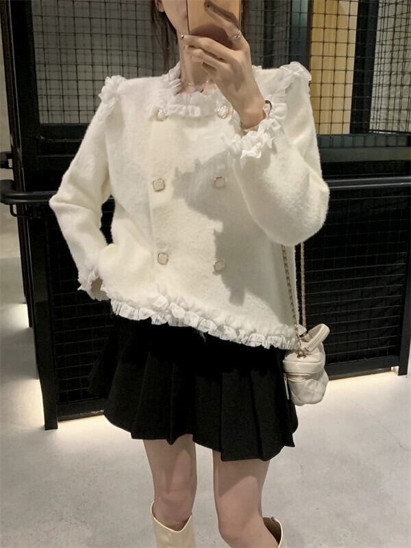 フランスの白いウールのコート、小さな香りのスタイル、短い婦人服、2023年秋冬の新しいスタイル、今年人気の美しいトップス ショート ホワイト オータム 秋物 ウィンター 冬物 nana57909239125 | modepoisson