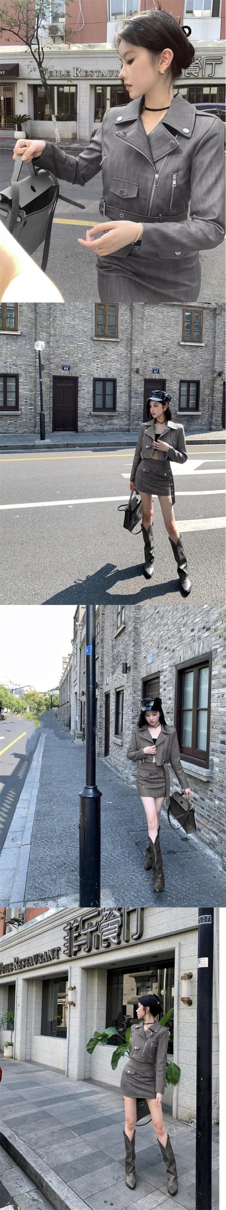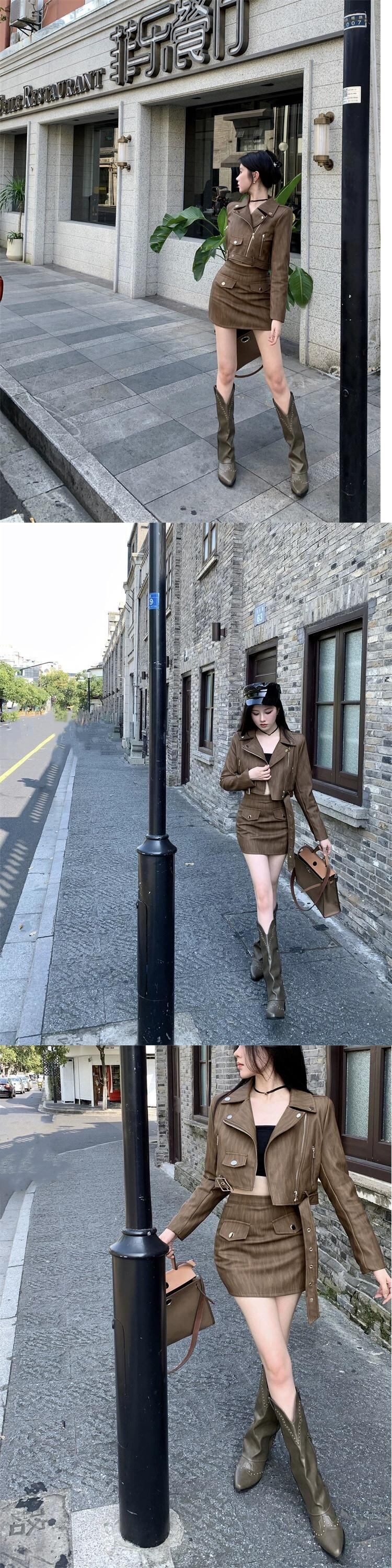 -エンドレトロオートバイPUレザーストリートジャケットハイウエストスカート甘くてクールな気質ツーピーススーツ女性秋の新スタイル 大人ガーリー スウィート キュート カジュアル オータム 秋物 nana83813996688 | modepoisson
