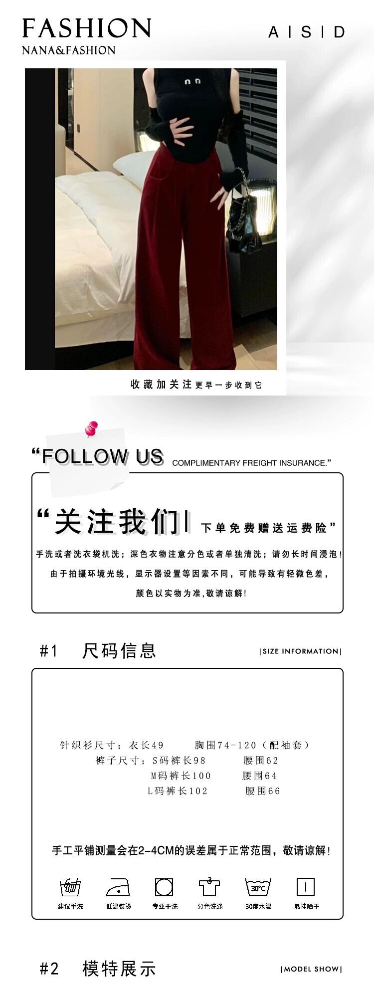 ホットダイヤモンド気質の袖、ハーフタートルネック、内側と外側で着用できる初秋のスリムフィットショートスタイル、赤いコーデュロイワイドレッグパンツスーツ レッド オータム 秋物 nana15971643228 | modepoisson