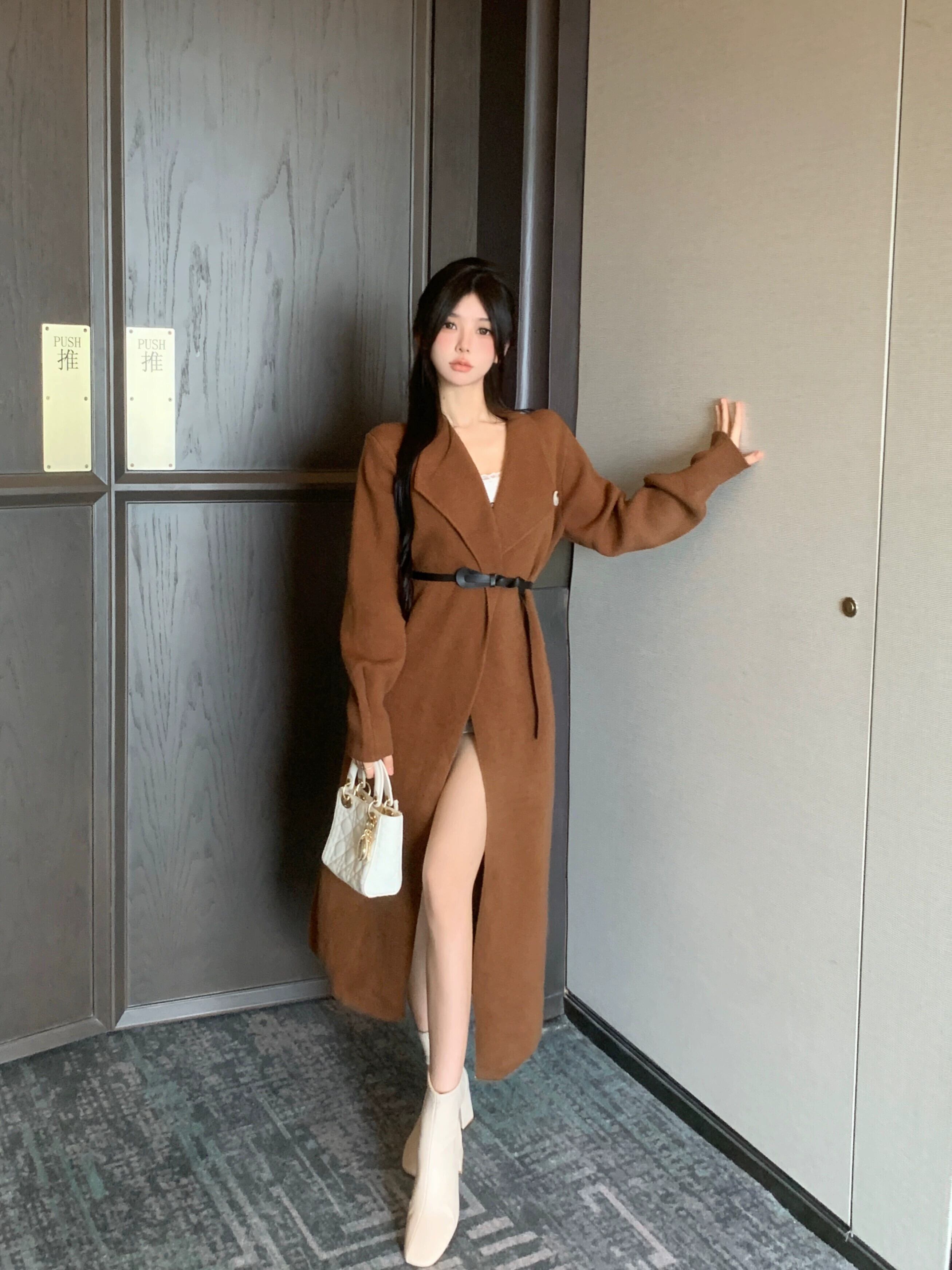 -エンドラペルセーターコートレディース、秋冬の雰囲気、ゆったりとしたミドル丈のウエストカーディガンコート2023新しいスタイル オータム 秋物 ウィンター 冬物 nana76903262974 | modepoisson