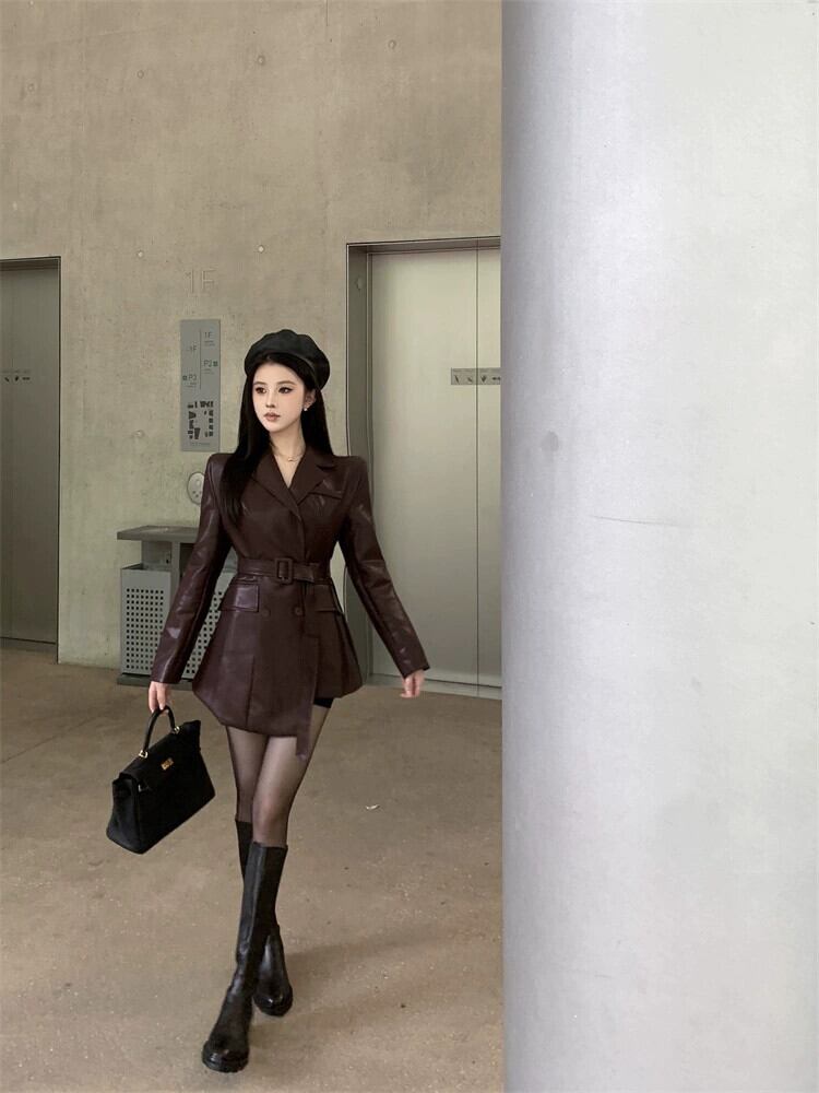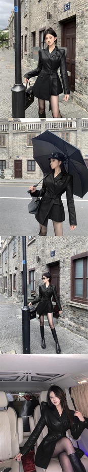 フランス王室姉妹スタイルライト成熟したスタイルニッチハイエンド多用途カジュアル PU レザーレースアップスーツレザージャケット女性の冬 ウィンター 冬物 nana15744480380 | modepoisson