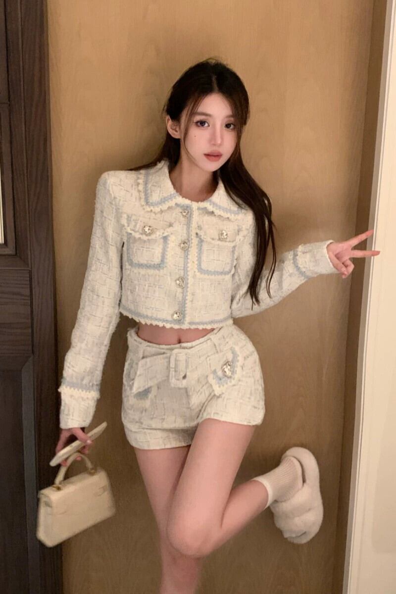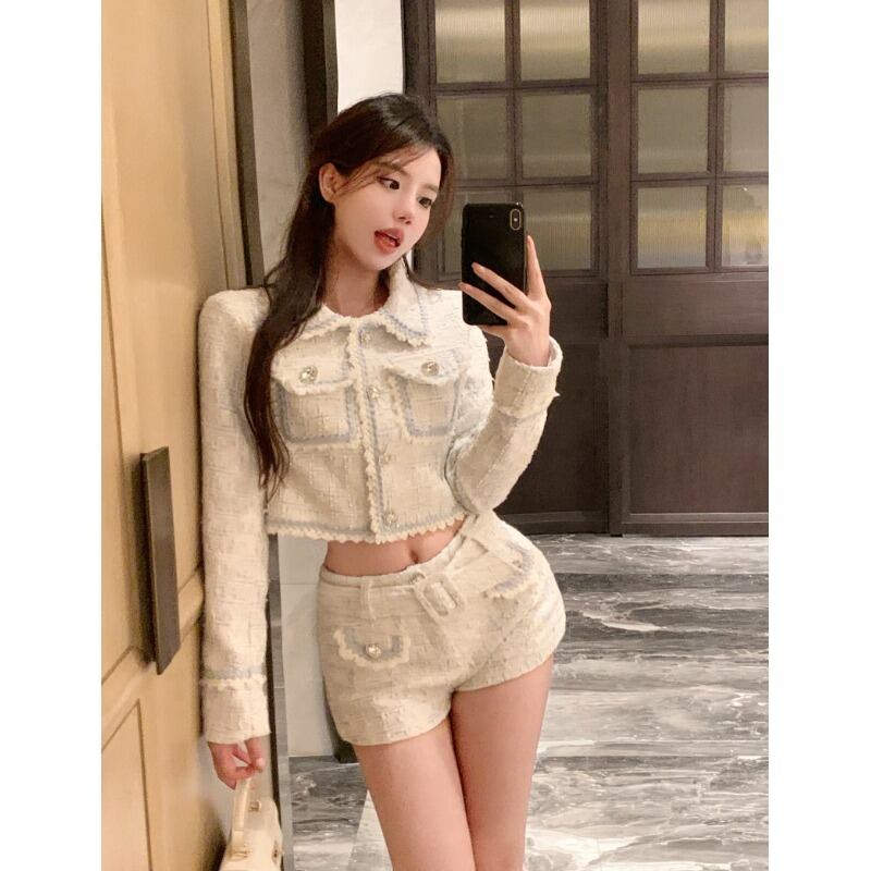 リッチ、シャオシャンスタイル、ショートジャケット、ハイウエストスリムショーツ、エレガントなデザインのツーピーススーツ、新しい秋スタイルの女性 ハイウェスト オータム 秋物 ブルマー nana21405476563 | modepoisson