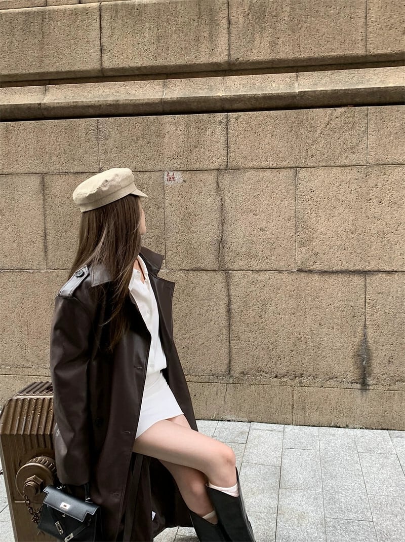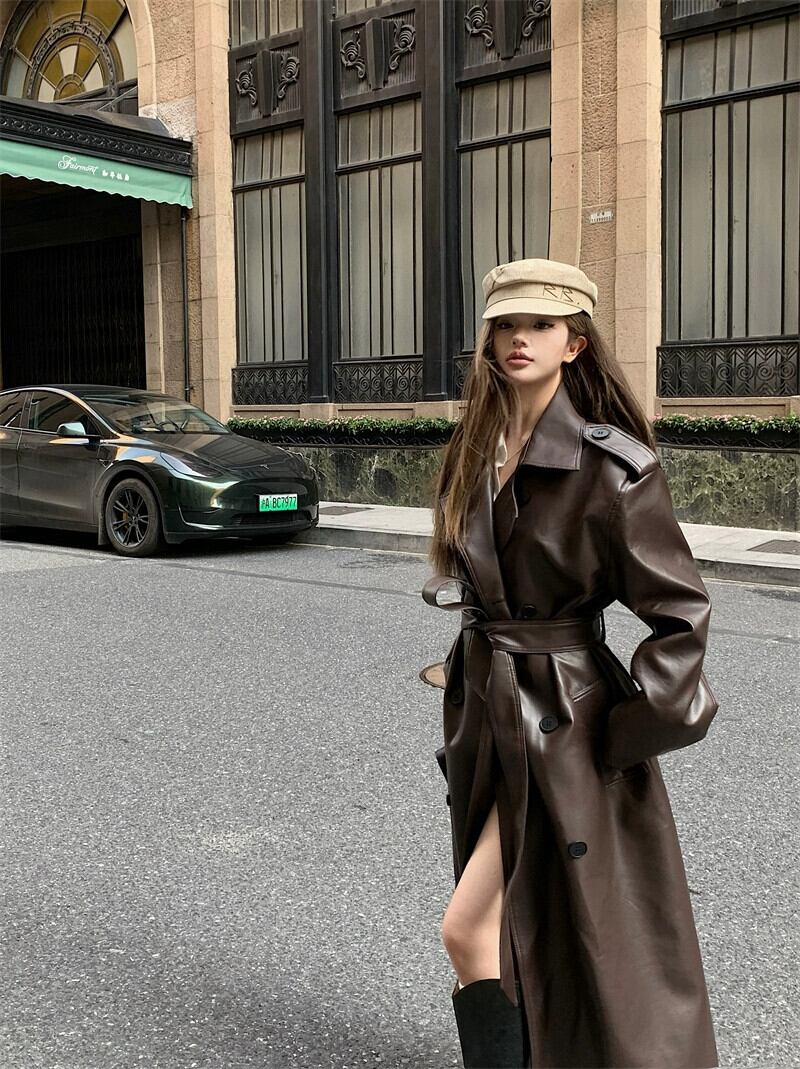 レトロなロング膝上コート、高級レディース秋冬新作英国風ルーズレザーウインドブレーカー、甘くてクールなストリートコート 大人ガーリー スウィート キュート カジュアル オータム 秋物 ウィンター 冬物 nana19006596012 | modepoisson