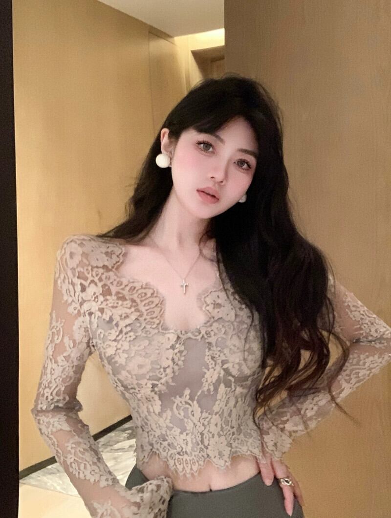 Pure Desire セクシーなレーストップ女性の秋と冬スリム V ネックショートトップスシックで美しいボトリングシャツでウエストとスタイルを引き締めます オータム 秋物 ウィンター 冬物 Vネック nana3416112972 | modepoisson