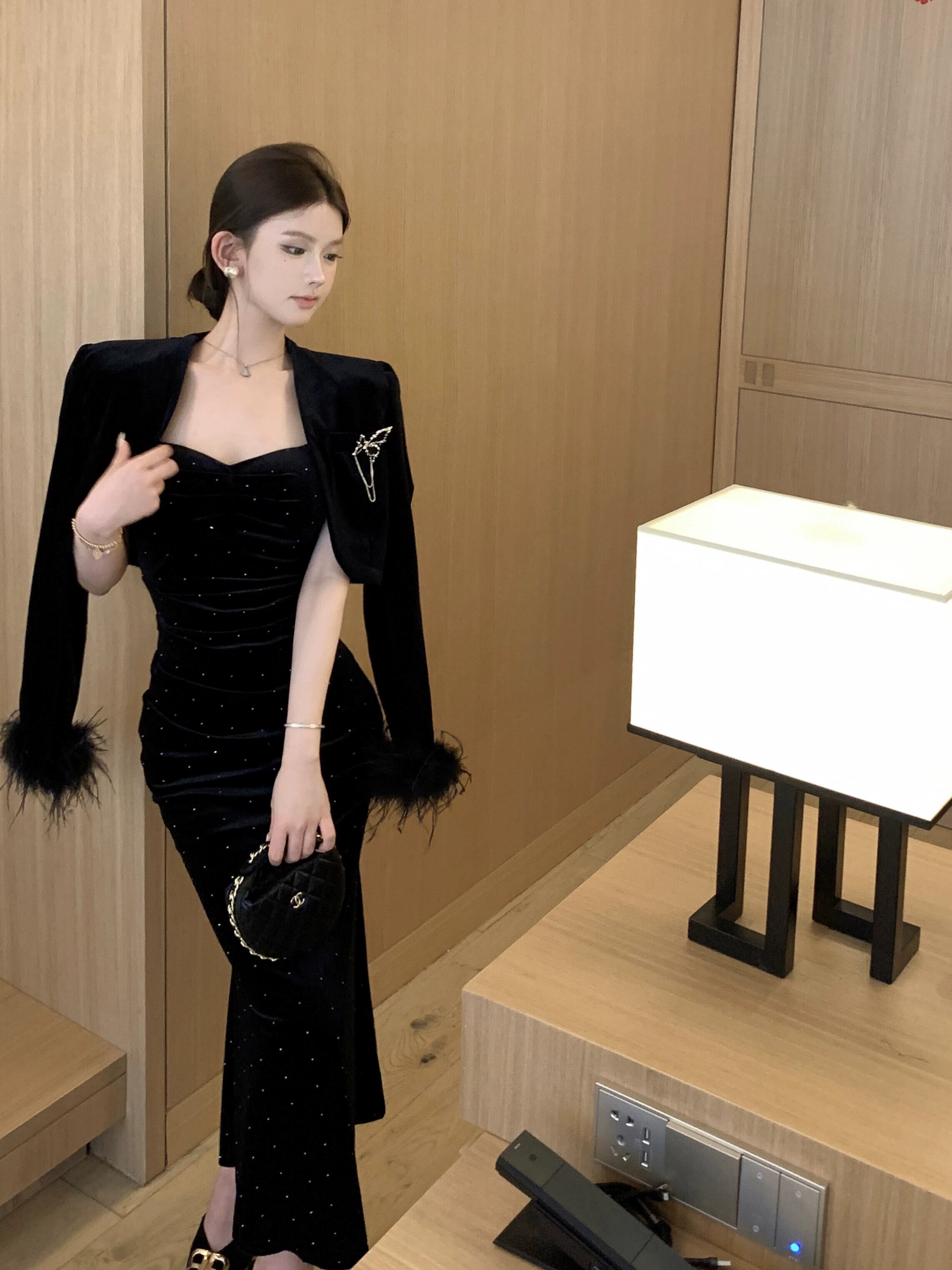 色:ゴールドベルベットブレザー,ベルベットパーマサスペンダースカート