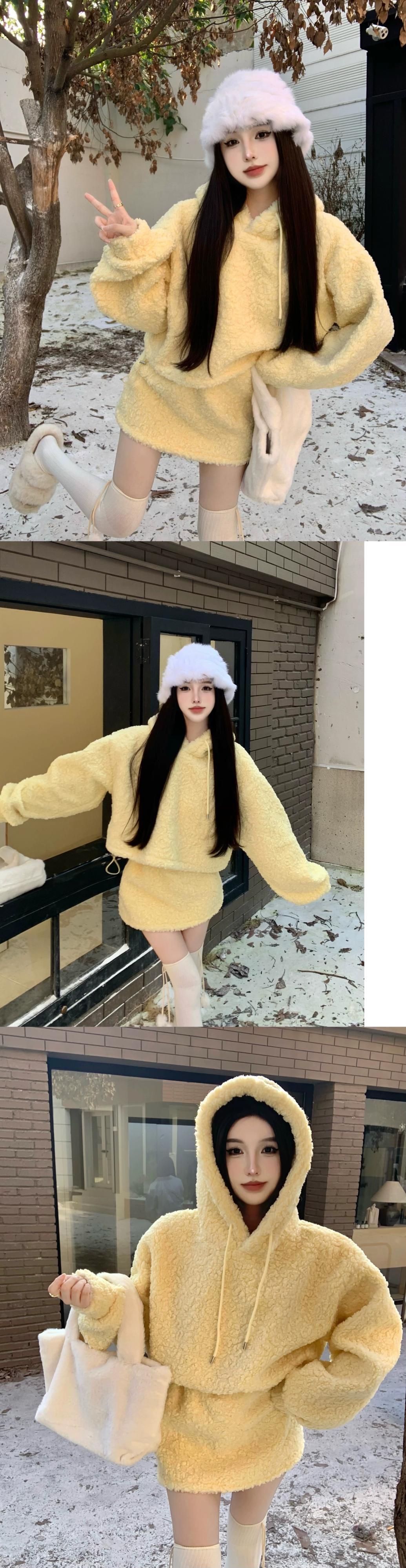 -end ラムウールフード付きスウェットシャツ秋冬 2023 新しい人気スタイルショート長袖トップスーツ女性 ロング オータム 秋物 ウィンター 冬物 nana88898899326 | modepoisson