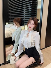 フリルシャツとショートパンツが揃った晩秋コーデ 2023 ネットセレブ風スーツデザイン 2点セット レディース オータム 秋物 ショーツ ブルマー nana22895760395 | modepoisson