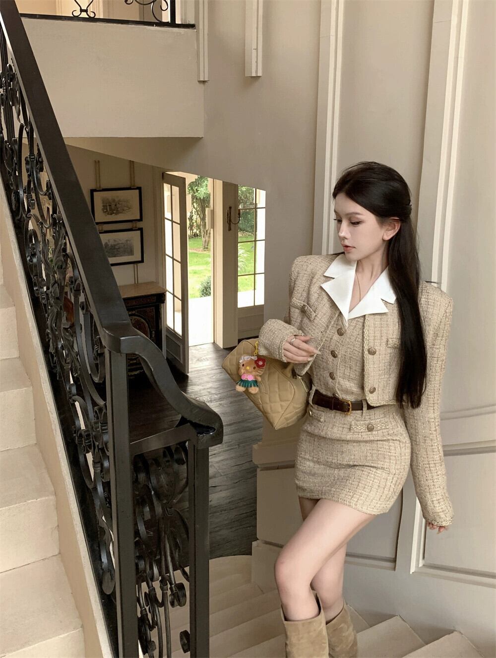 気質レトロな小さな香りスタイルのノースリーブボトミングベストドレスハイエンドの女性の秋と冬の新しいインナーショートスカート オータム 秋物 ウィンター 冬物 nana4030622759 | modepoisson