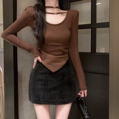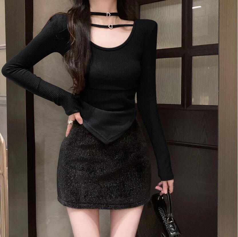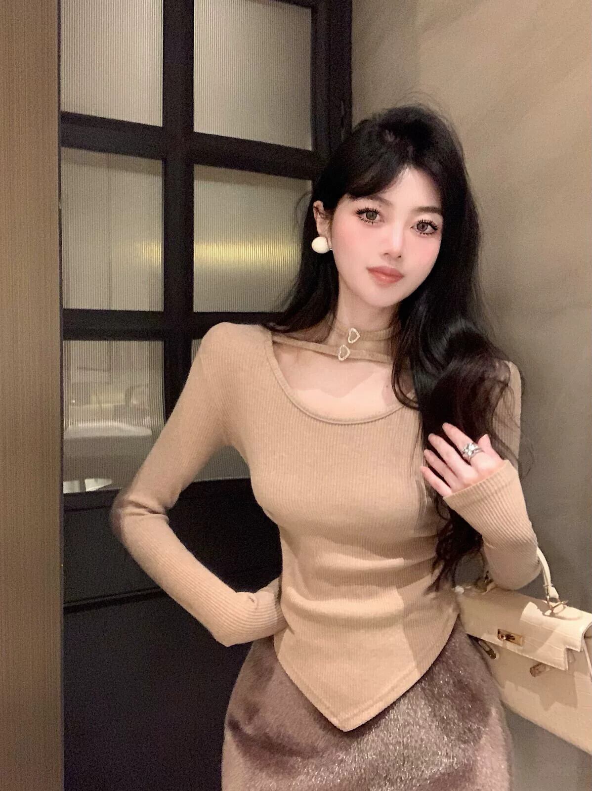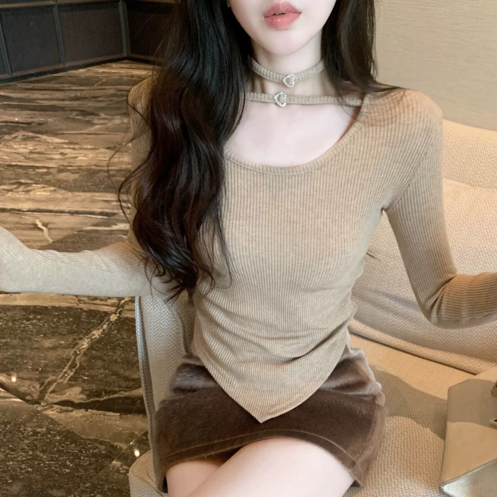 French Sweet Girl 長袖 Tシャツ ニッチボトリングシャツ シックなスリムスリムトップ レディース 秋冬 ロング 大人ガーリー スウィート キュート カジュアル オータム 秋物 ウィンター 冬物 nana32677056792 | modepoisson