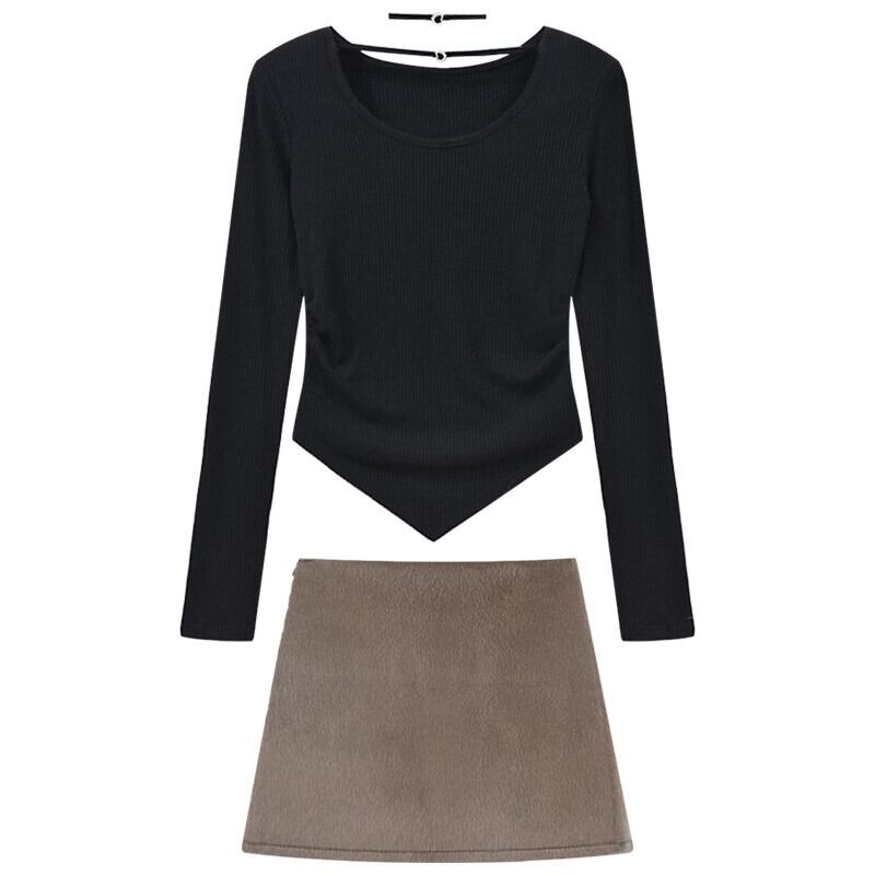 色:ブラウントップ,オートミールトップ,ブラックトップ,黒スカート,カーキ色のスカート