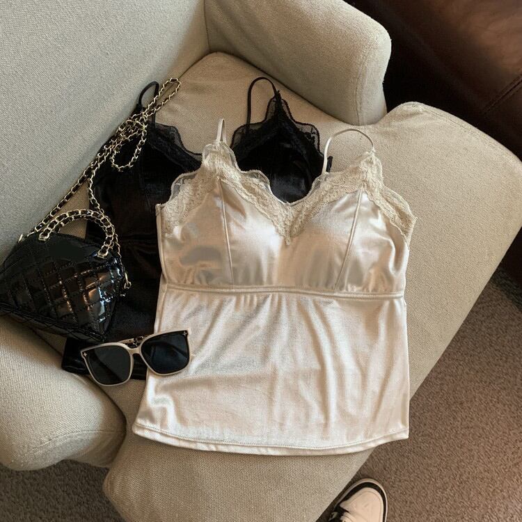 アメリカンベルベットレースキャミソールトップ秋と冬のインナーレイヤリングシャツハイエンド胸パッド入りチューブトップ女性 オータム 秋物 ウィンター 冬物 nana80586831739 | modepoisson