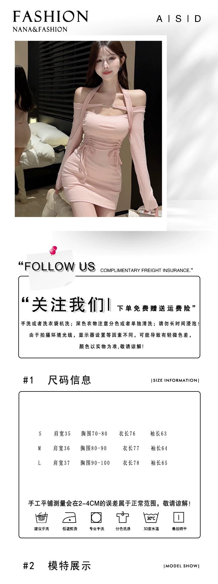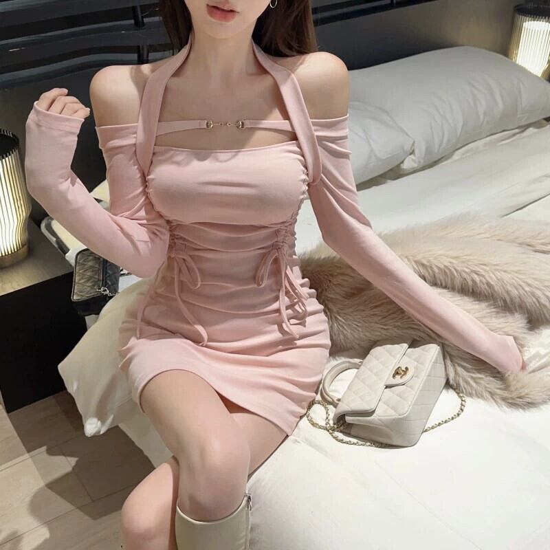 純粋な欲望スタイルの長袖ドレスの女性の秋と冬の新しいスリムでセクシーなホルターネックストラップヒップカバーショートスカート ロング オータム 秋物 ウィンター 冬物 nana19530721695 | modepoisson