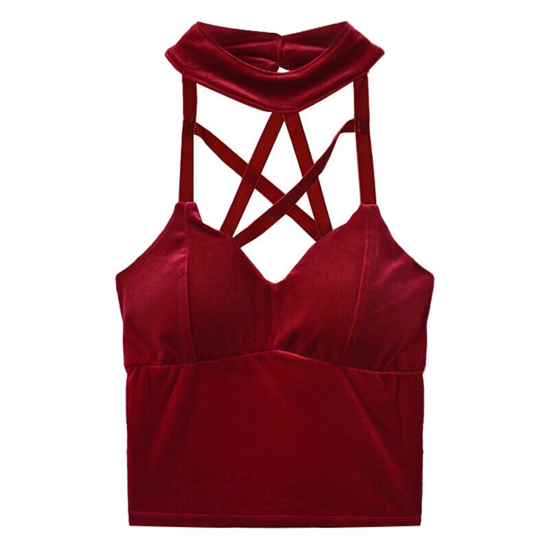 ベルベットのホルターネックベスト秋と冬、ボトムシャツ、セクシーな中空サスペンダー、トップ、ヨーロッパとアメリカの服 オータム 秋物 ウィンター 冬物 ヨーロピアン nana78644103279 | modepoisson