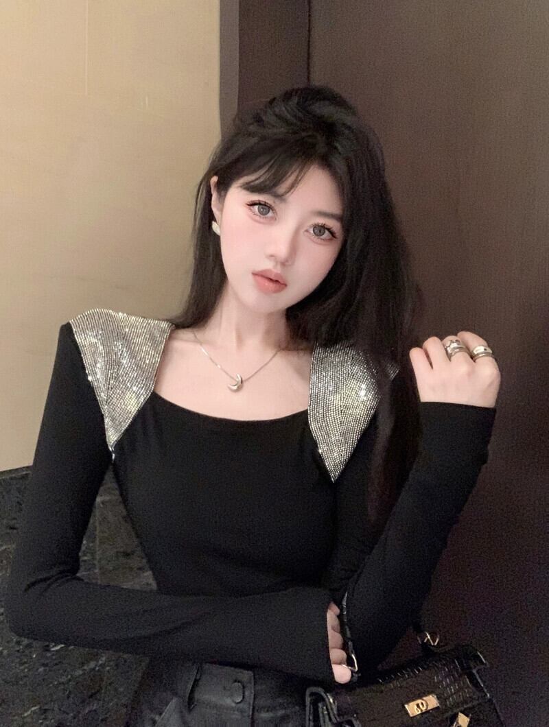 重工業ダイヤモンドスクエアネック Tシャツ女性の秋と冬のデザインニッチ長袖トップ痩身ボトリングシャツ ロング オータム 秋物 ウィンター 冬物 スクウェア nana53152690345 | modepoisson