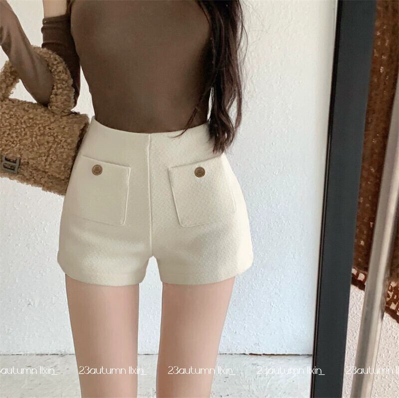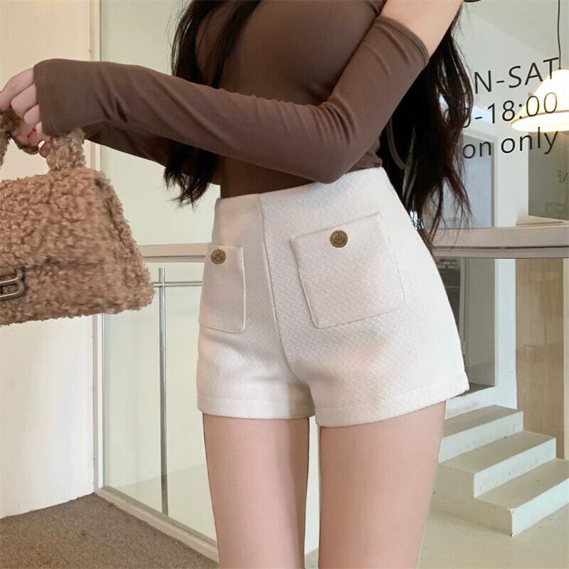 秋冬のウールショートパンツレディース、小さめ、ハイウエスト、スリムストレートカジュアルパンツ、ワイドレッグブーツパンツ、アウターレギンス オータム 秋物 ウィンター 冬物 ショーツ ブルマー nana95167117001 | modepoisson