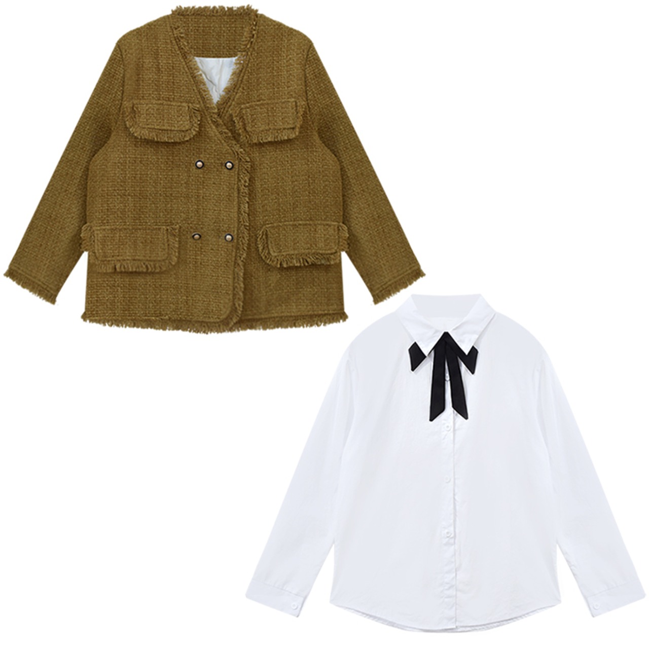 絶妙なツイードのミドル丈のゆったりとした小さな香りの良いスタイルのダウンジャケットとベルベットの暖かいコートの女性の秋と冬 オータム 秋物 ウィンター 冬物 nana54558517547 | modepoisson