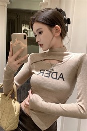 甘いホットガールスリム Tシャツ女性の長袖レター中空プリーツウエスト不規則なショートボトリングトップ秋と冬 ロング 大人ガーリー スウィート キュート カジュアル オータム 秋物 ウィンター 冬物 nana68661528576 | modepoisson