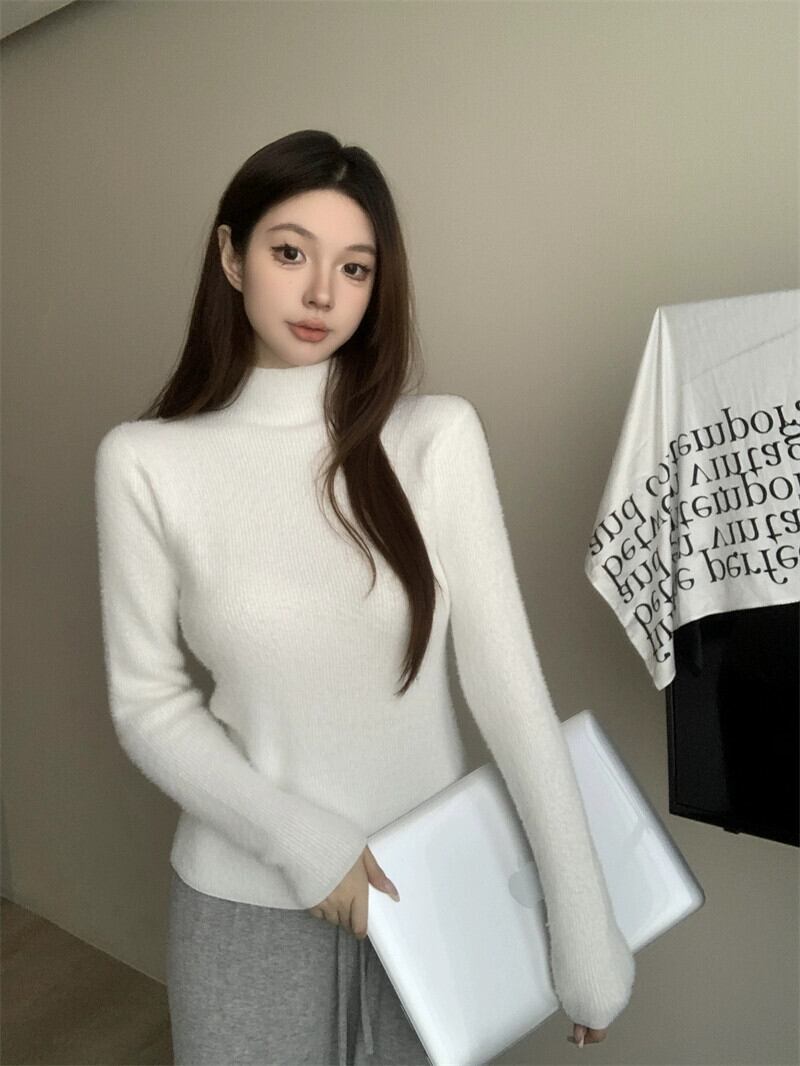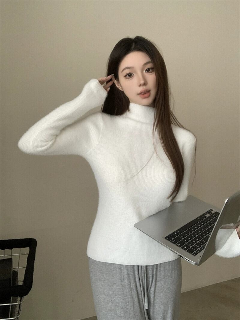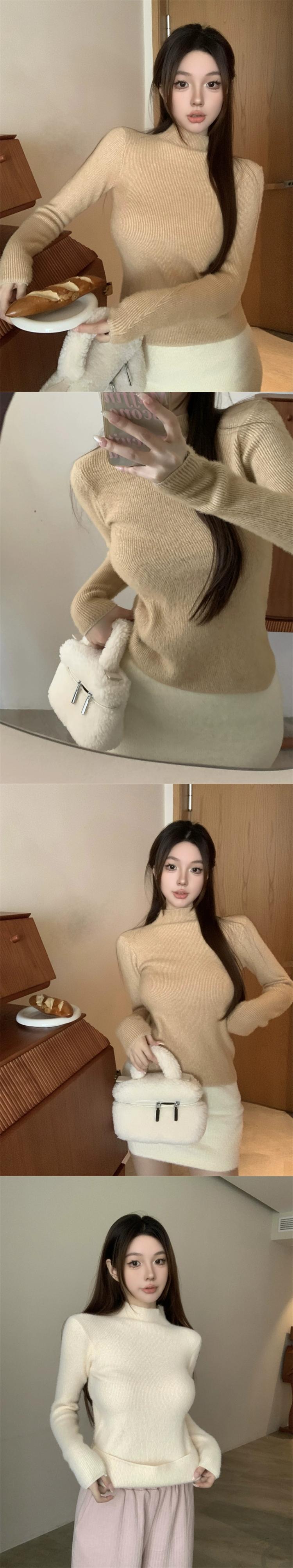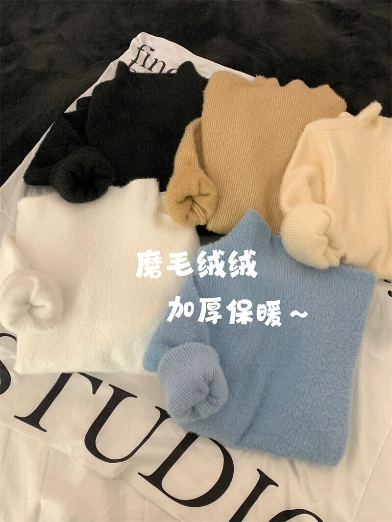 女性のベルベットのセーター秋と冬 2023 新しい厚みのあるワンピースベルベットハーフハイカラーインナーベースレイヤーアウターニットセータートップ オータム 秋物 ウィンター 冬物 nana23504466586 | modepoisson