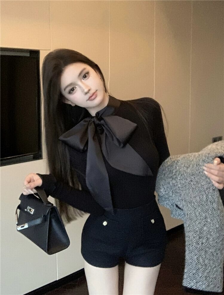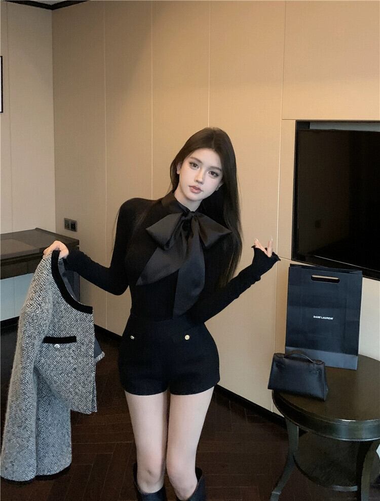 色:グレーコート,黒いTシャツ,小香ショーツ