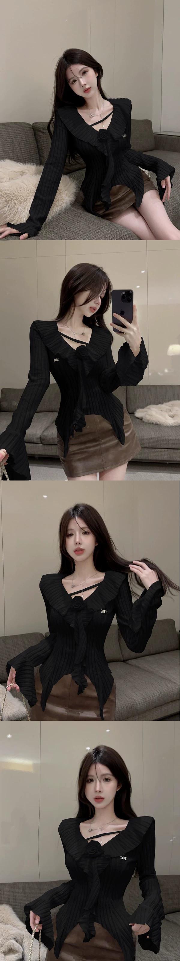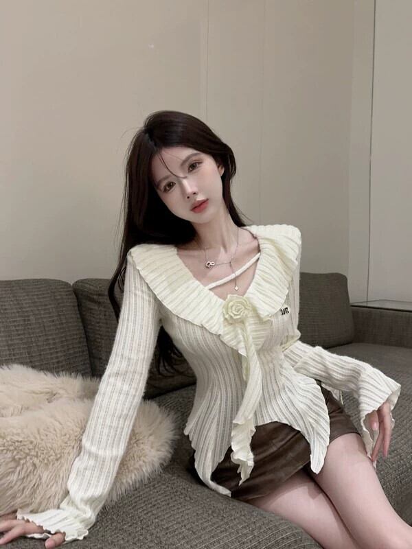 純粋な欲望スタイル v ネックセータートップニッチシックなフリル長袖セーター女性の秋と冬の 2023 新しいスタイル ロング オータム 秋物 ウィンター 冬物 Vネック nana10418131391 | modepoisson