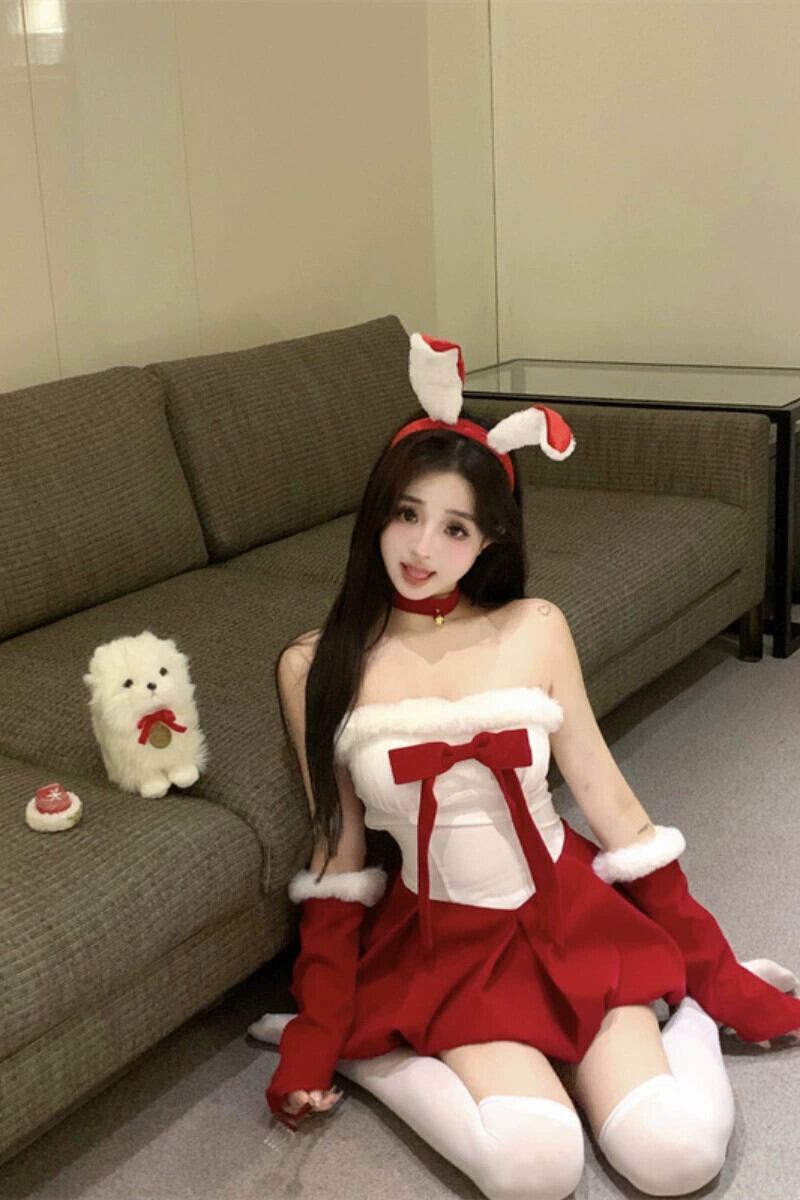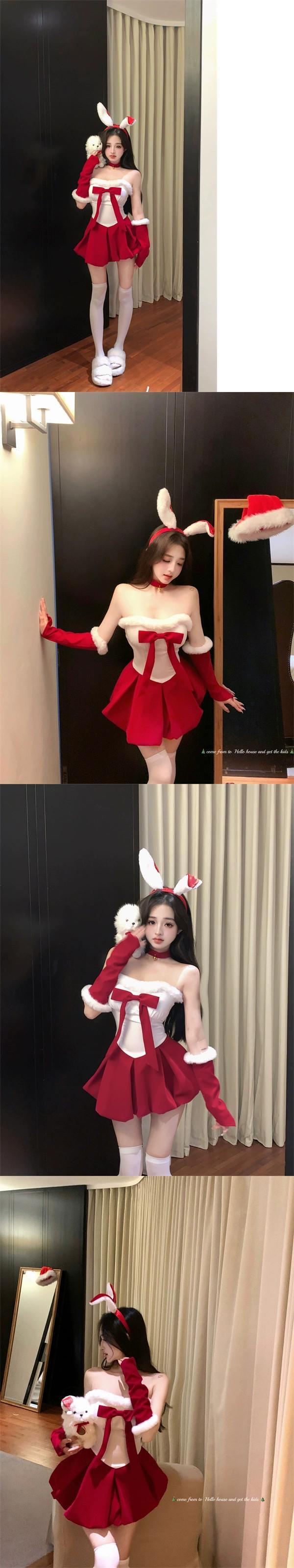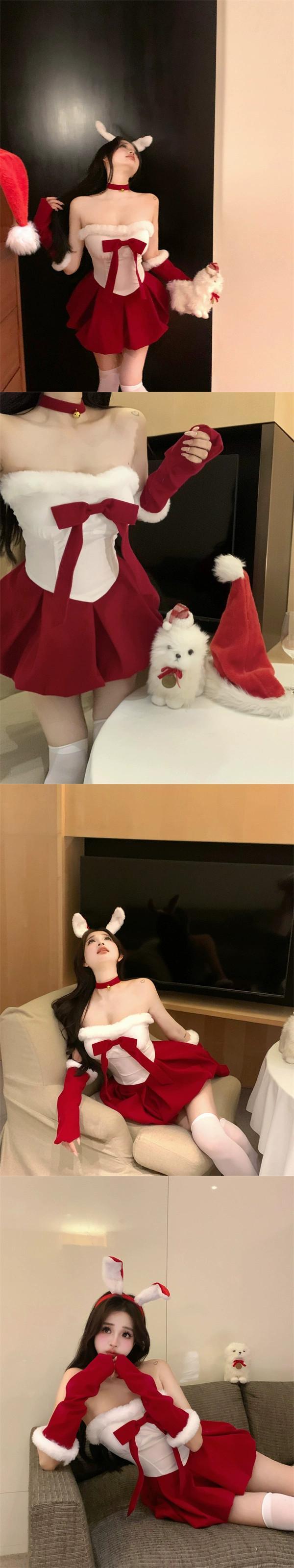 クリスマス雰囲気ベルベット甘いリボンチューブトップドレス花のつぼみショートスカート甘くてセクシーな衣装aラインスカート女性 大人ガーリー スウィート キュート カジュアル フラワーデザイン nana18530730291 | modepoisson