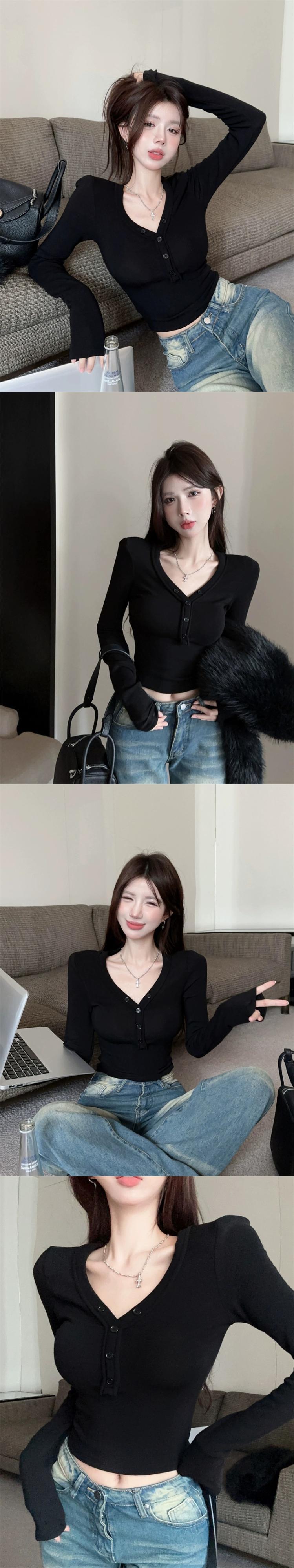 ボトリングシャツアメリカン右肩長袖Tシャツ秋冬Vネック痩身ショート甘いネクタイ白インナートップレディース ロング ホワイト 大人ガーリー スウィート キュート カジュアル オータム 秋物 ウィンター 冬物 nana84731091066 | modepoisson