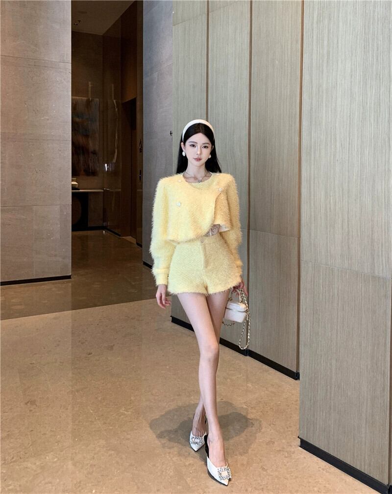 Xiaoxiang スタイルの女性のスーツの女性の秋と冬の新しいショートコートハイウエストワイドレッグショーツ小さなドレス 2 点セット ハイウェスト オータム 秋物 ウィンター 冬物 ブルマー ワイドパンツ nana50312827771 | modepoisson