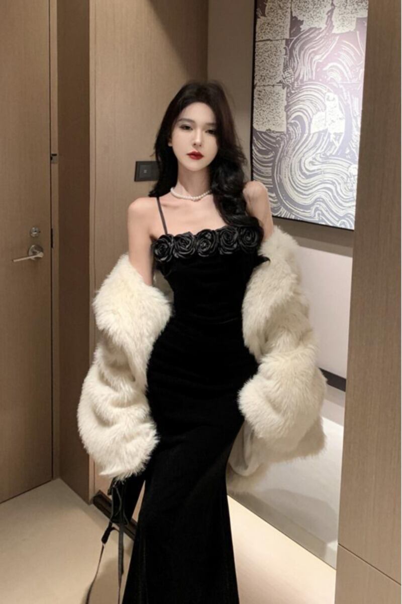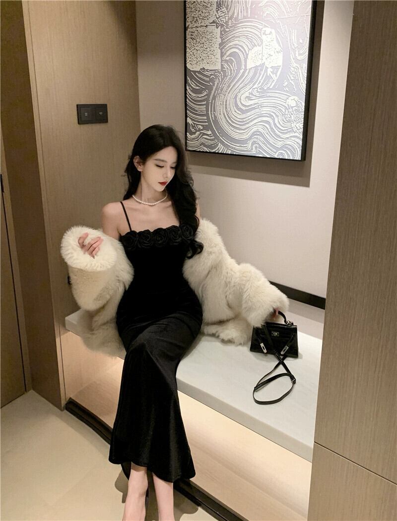 秋冬の気質サスペンダードレス女性、フレンチスリミングロングスカート、ハイエンドスリムブラックフィッシュテールスカート オータム 秋物 ウィンター 冬物 nana60315283206 | modepoisson