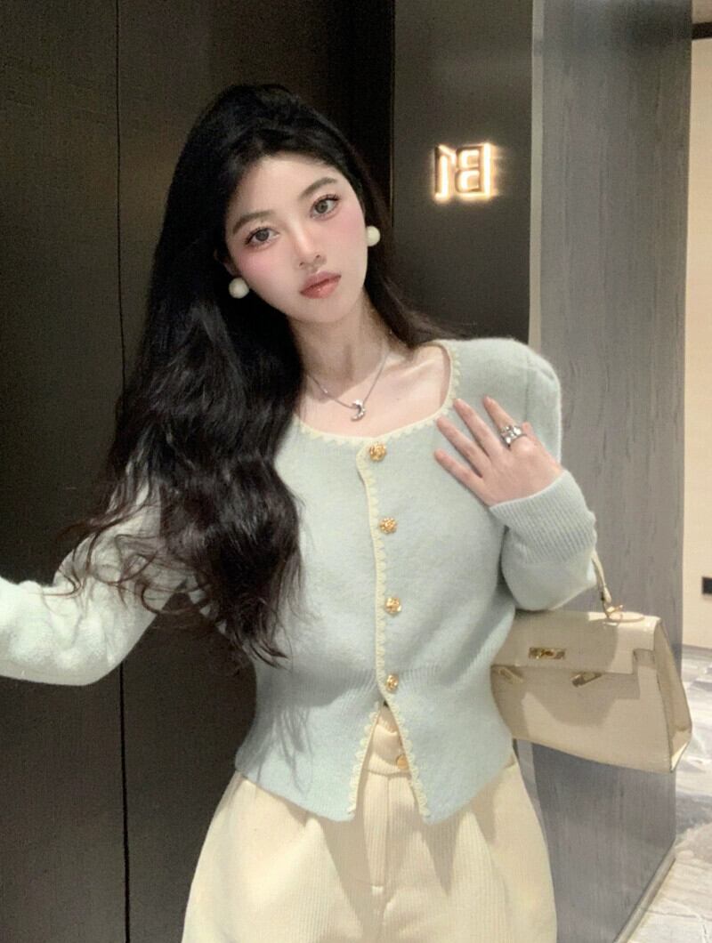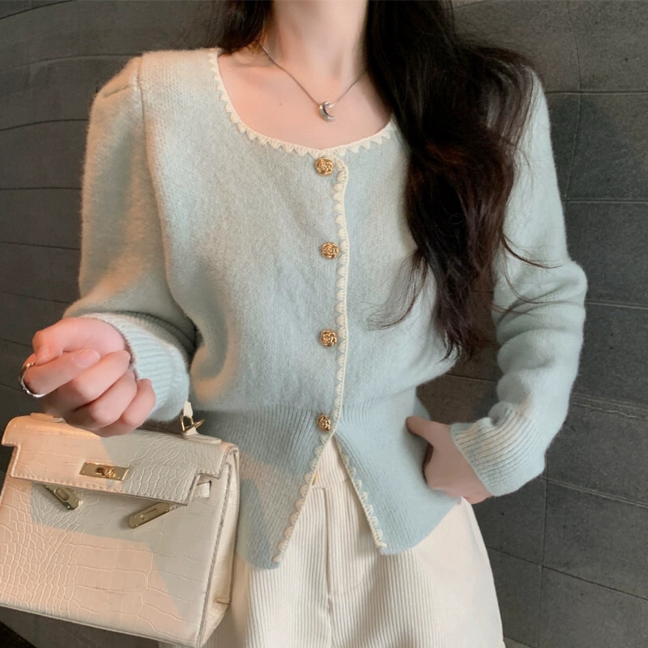 Xiaoxiangfeng 優しいスタイル スクエアネック セーター レディース 秋冬スタイル ボトリング セーター カーディガン ジャケット オータム 秋物 ウィンター 冬物 スクウェア nana14766161418 | modepoisson