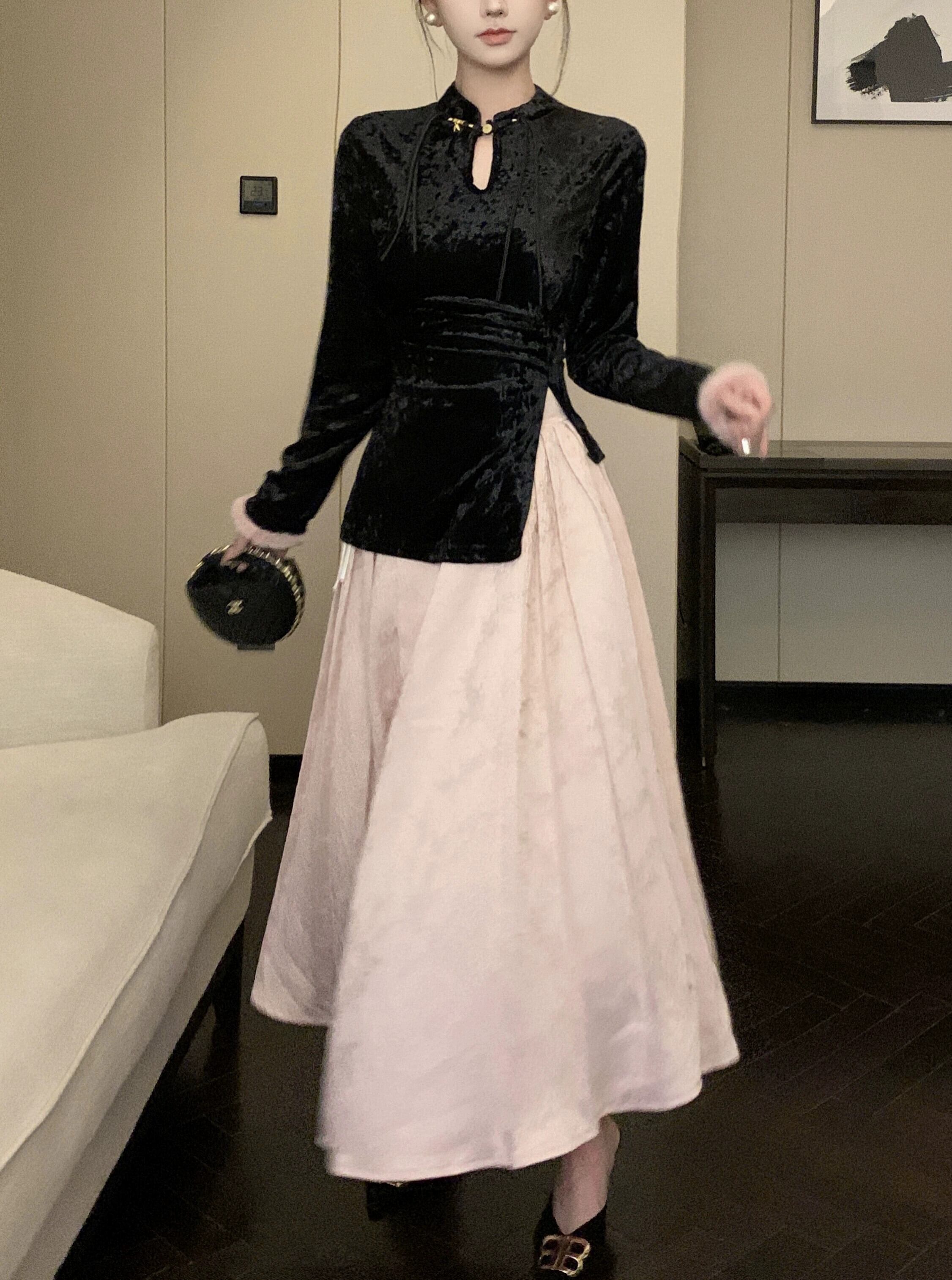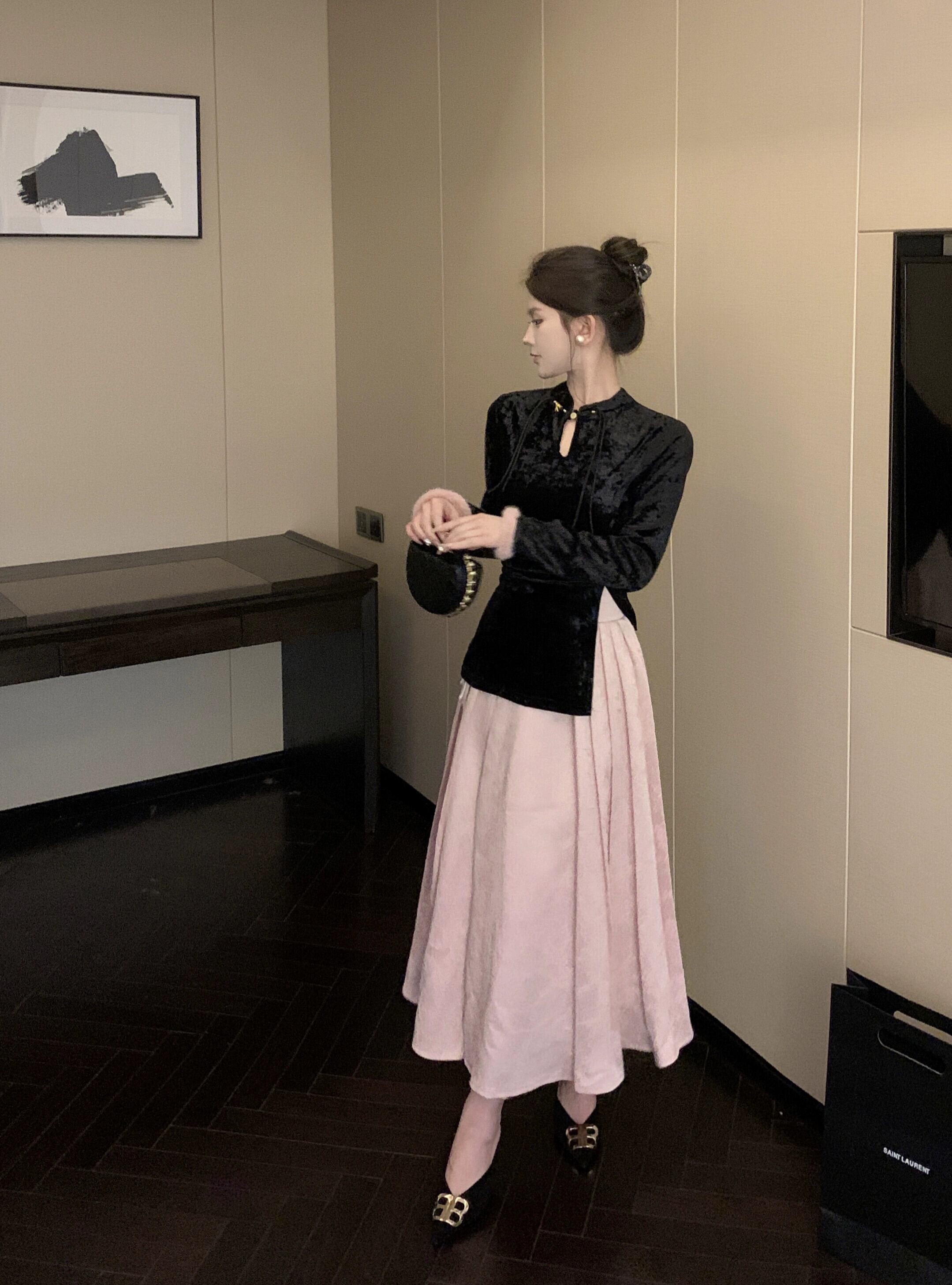 中国風プレートボタンデザインニッチトップスレディースベルベットスリット長袖ボトリングシャツユニークでシックな秋冬シャツ ロング オータム 秋物 ウィンター 冬物 nana52877396534 | modepoisson