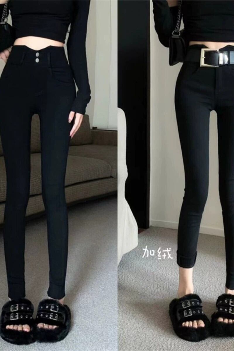 秋冬のベルベットの厚みのあるレトロなハイウエストカジュアルパンツ、新しいタイトフィットでスリムな万能ペンシルパンツロングパンツ オータム 秋物 ウィンター 冬物 nana95577394484 | modepoisson