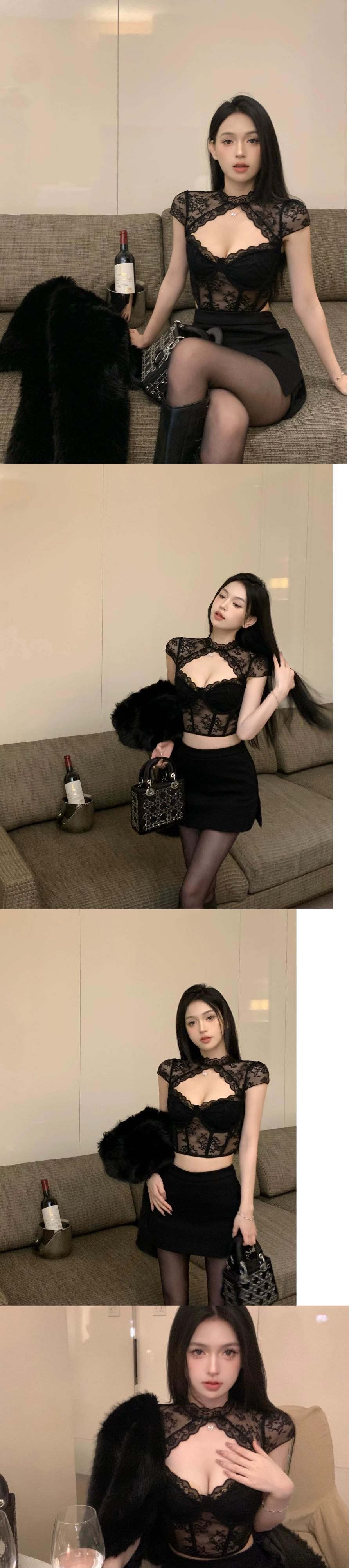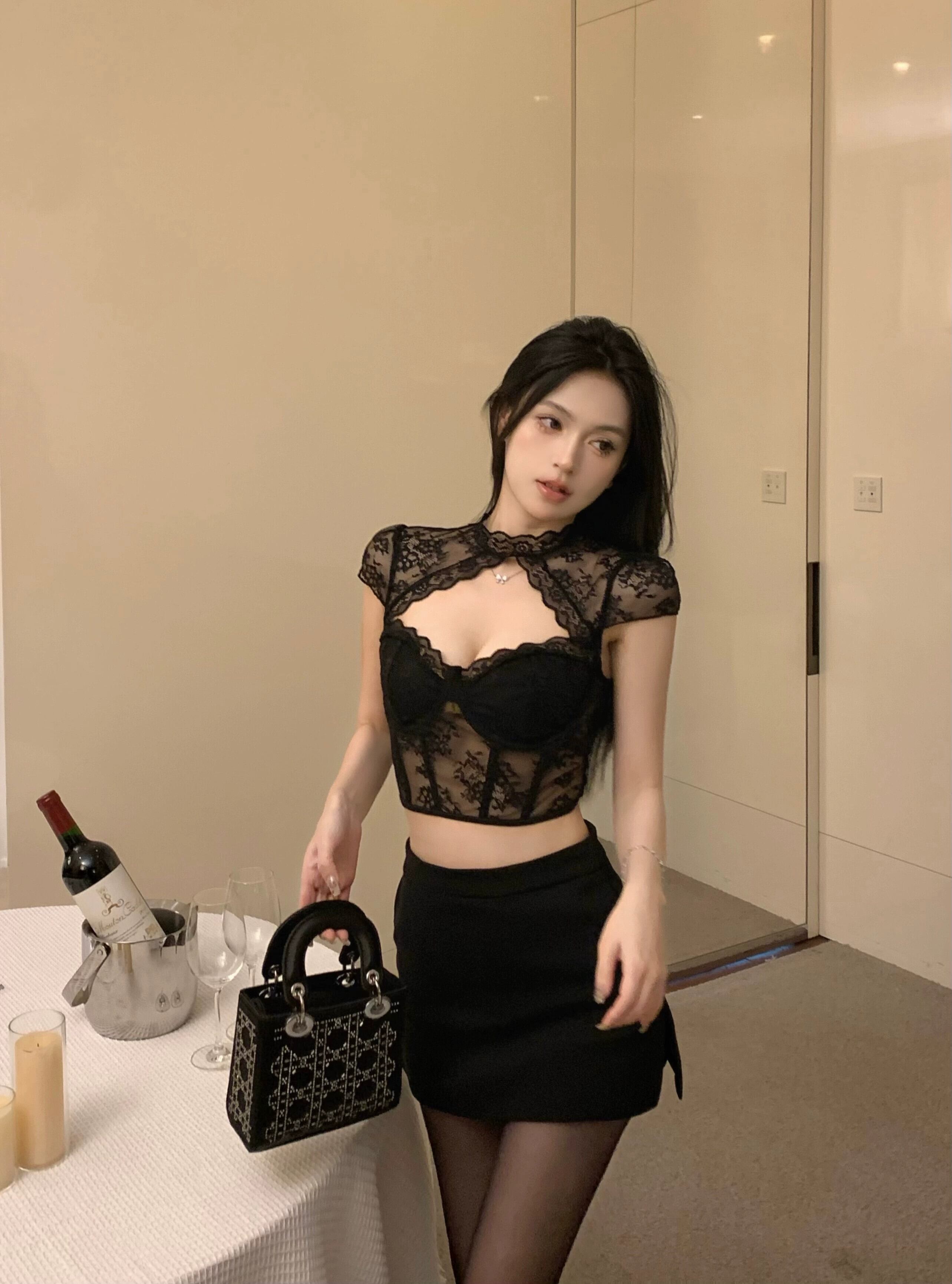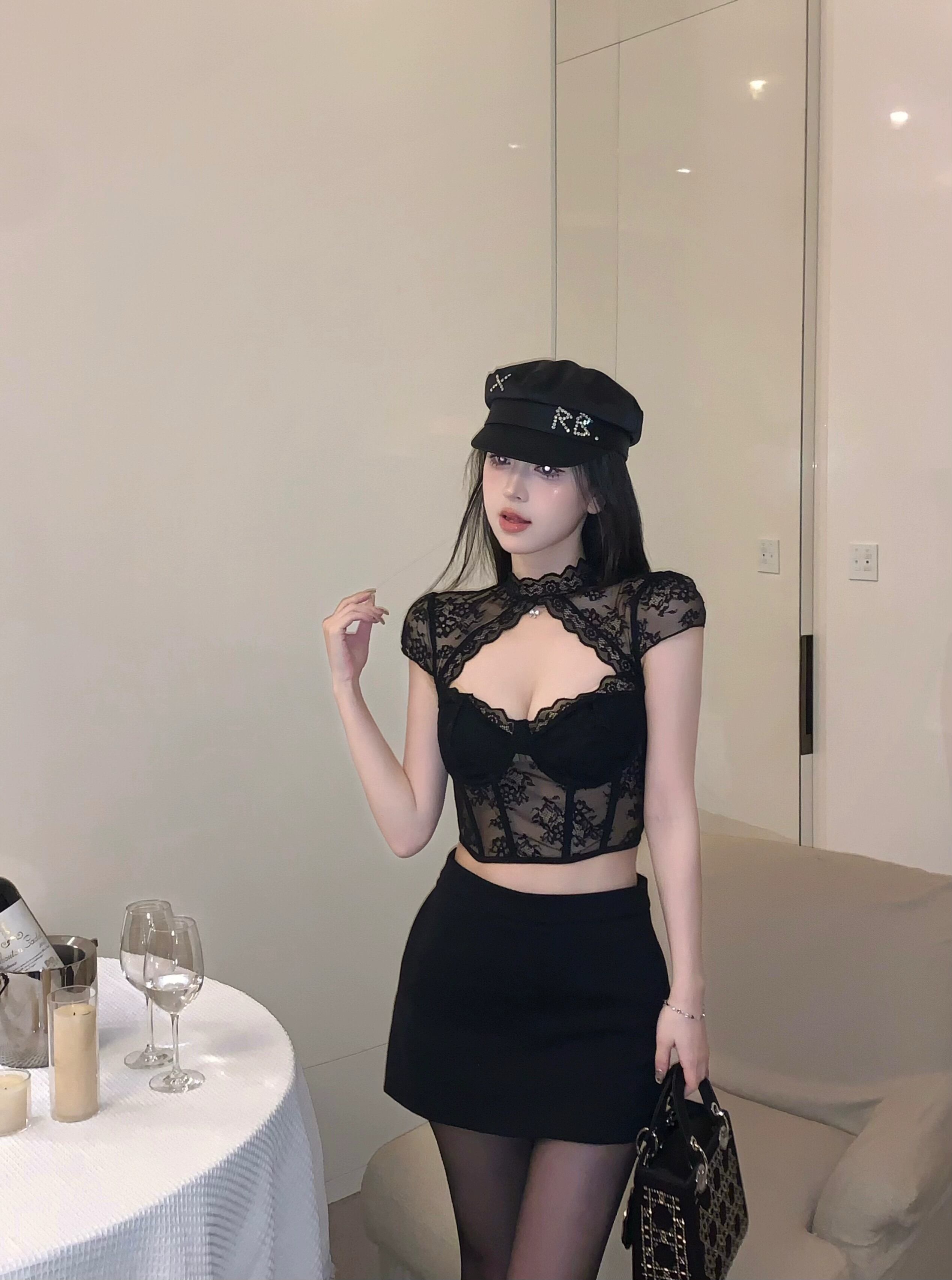 純粋な欲望のセクシーなホルターネックレースボトリングシャツと秋と冬のハイエンドブラックフレンチネクタイショートトップ女性 オータム 秋物 ウィンター 冬物 nana65947465081 | modepoisson