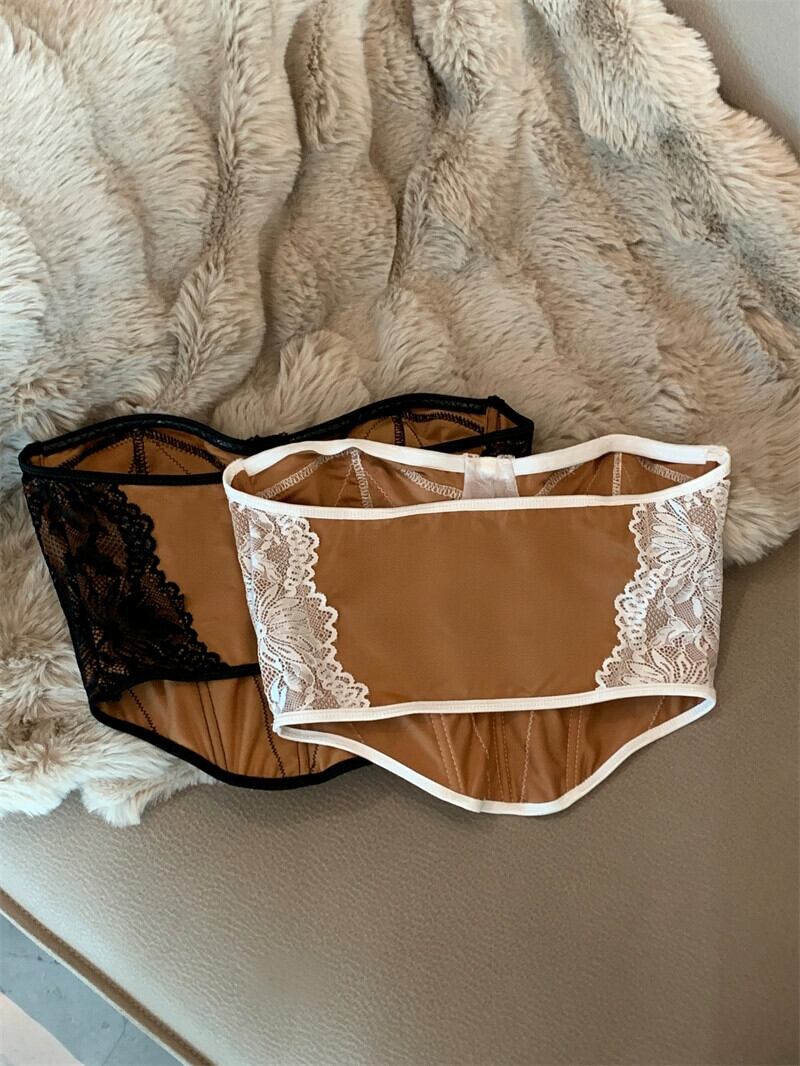 レーススプライスフィッシュボーンチューブトップ小さなベスト女性の秋と冬のインナーレイヤリングシャツ、スリムショートノースリーブスモールトップアウターウェア 半袖 ハーフスリーブ オータム 秋物 ウィンター 冬物 nana24618184881 | modepoisson