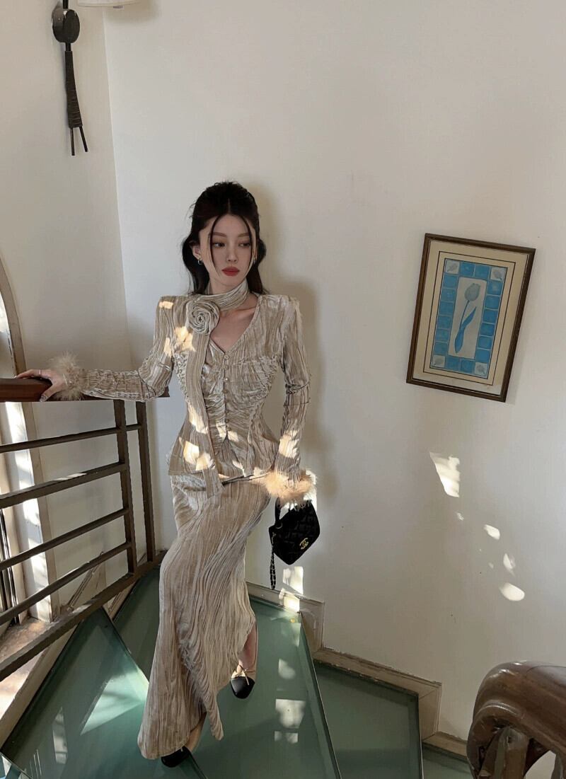 ベルベットレトロシャツスーツフレンチデザインニッチ長袖ボトシャツハイエンド気質トップ女性の秋と冬の ロング オータム 秋物 ウィンター 冬物 nana33366932015 | modepoisson