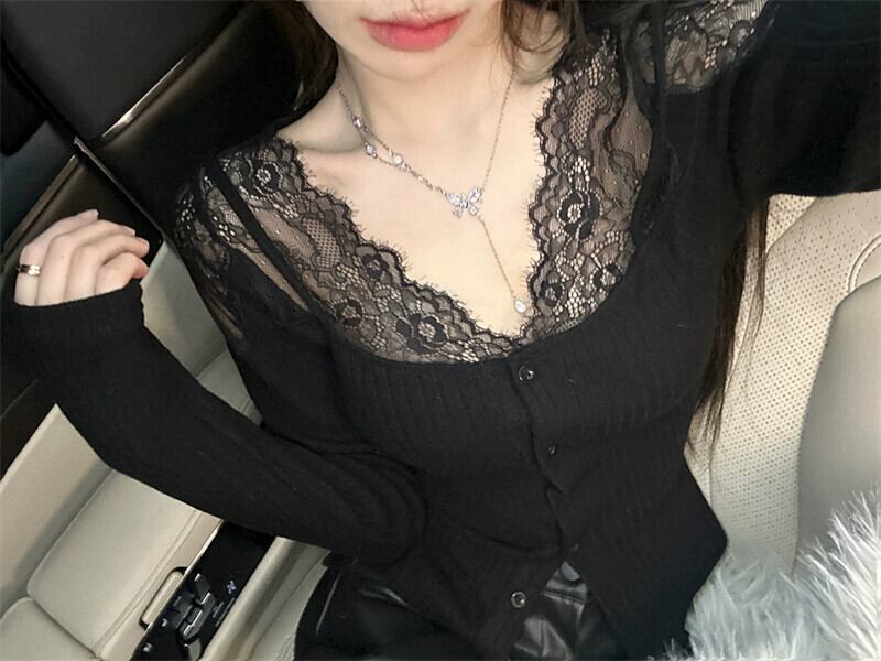 秋と冬のデザインのニッチレーススプライシングボトミングシャツスリムフィットトップの長袖白いTシャツの女性 ロング ホワイト オータム 秋物 ウィンター 冬物 nana13375866597 | modepoisson