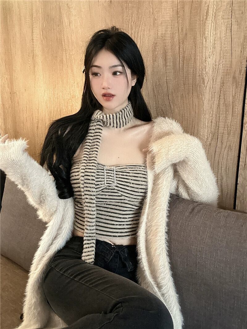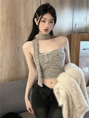 ホットストライプホルターネックチューブトップショートベスト女性秋と冬のインナーレイヤリングシャツ甘くてスパイシーなノースリーブ小さなトップアウターウェア 大人ガーリー スウィート キュート カジュアル オータム 秋物 ウィンター 冬物 nana61228278344 | modepoisson