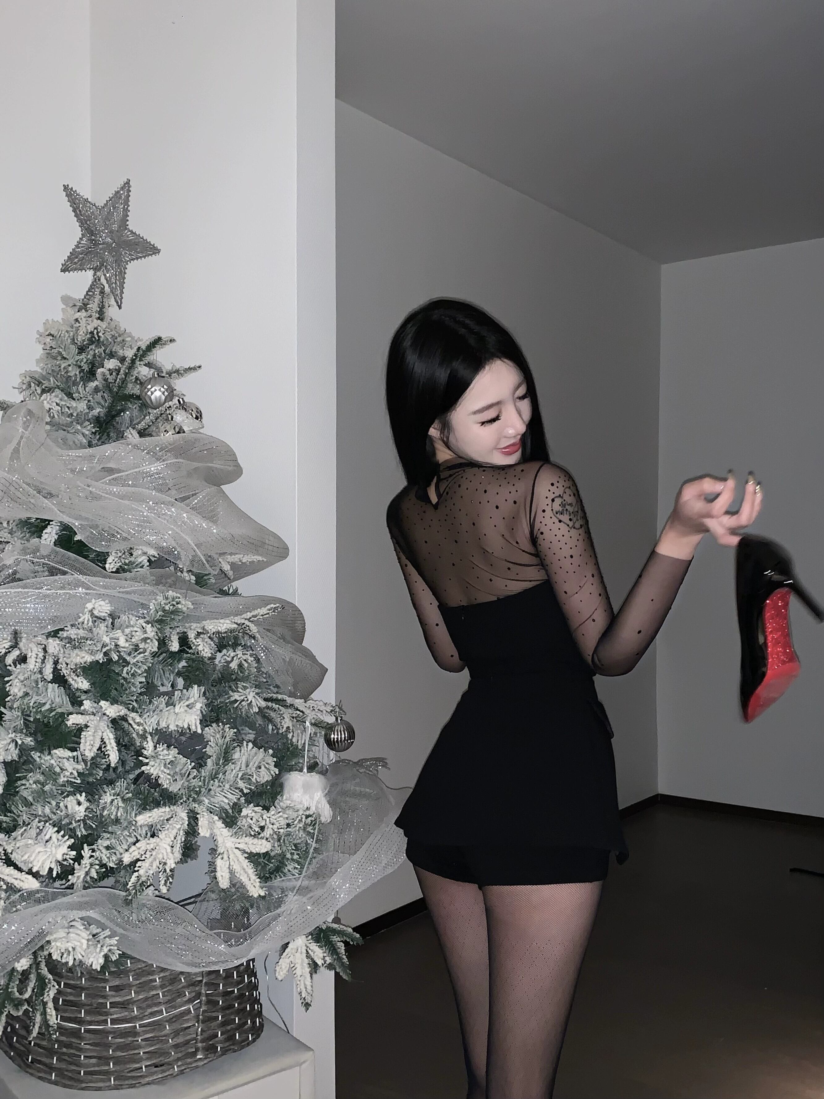 純粋な欲望メッシュ黒 Tシャツチューブトップ気質社交家秋と冬のスーツの女性のロイヤルシスタースーツトップツーピースセット ブラック オータム 秋物 ウィンター 冬物 nana67239335484 | modepoisson