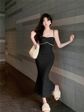 秋と冬のインナーサスペンダードレスフレンチスリム底フィッシュテールロングスカート白ウエスト痩身ヒップスカート女性 ホワイト オータム 秋物 ウィンター 冬物 nana10732401869 | modepoisson
