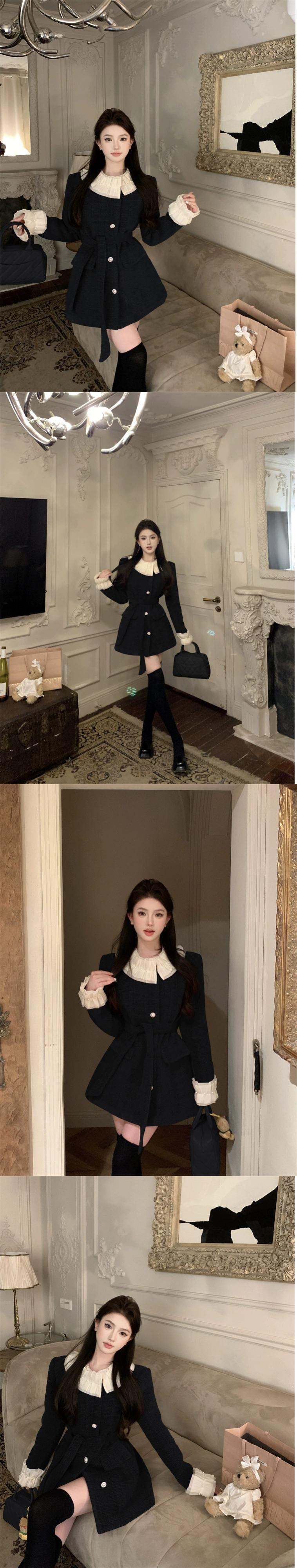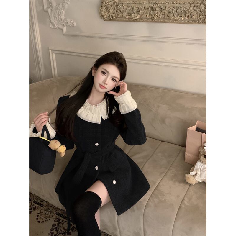 Xiaoxiangfeng 絶妙なキルティングウールコート女性の秋と冬のコントラストカラーパールツイードレースアップミドル丈コート オータム 秋物 ウィンター 冬物 真珠 nana6786077428 | modepoisson