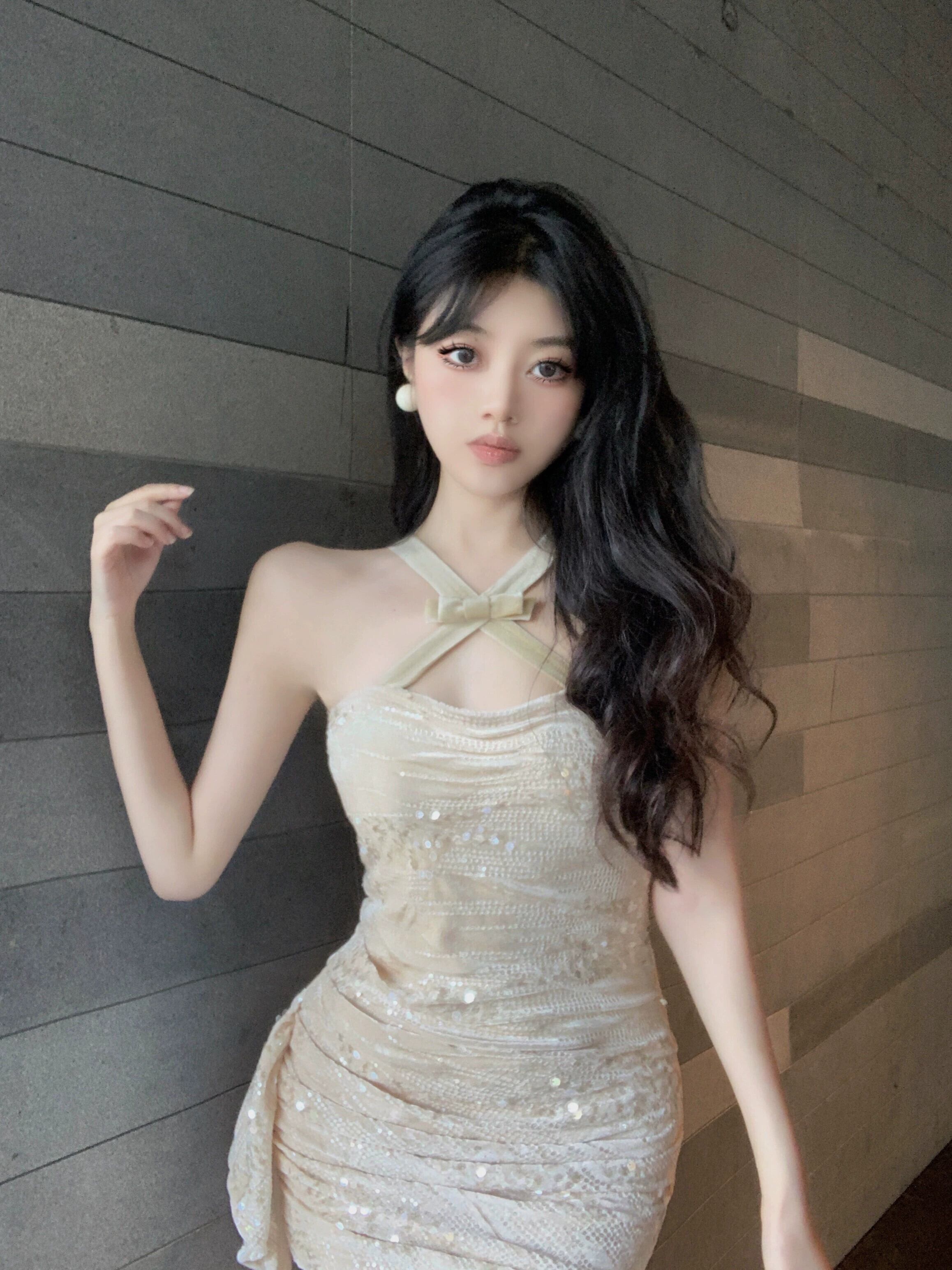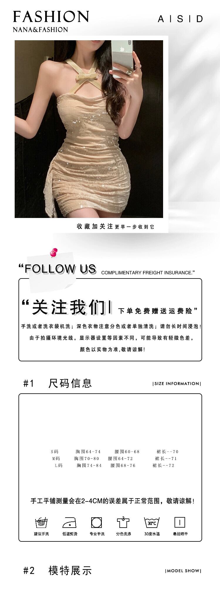秋と冬の蝶ネクタイのセクシーなドレス、スパンコールのサスペンダーが付いたヒップを包み込むウエストを細くするショートスカート オータム 秋物 ウィンター 冬物 nana71463887152 | modepoisson
