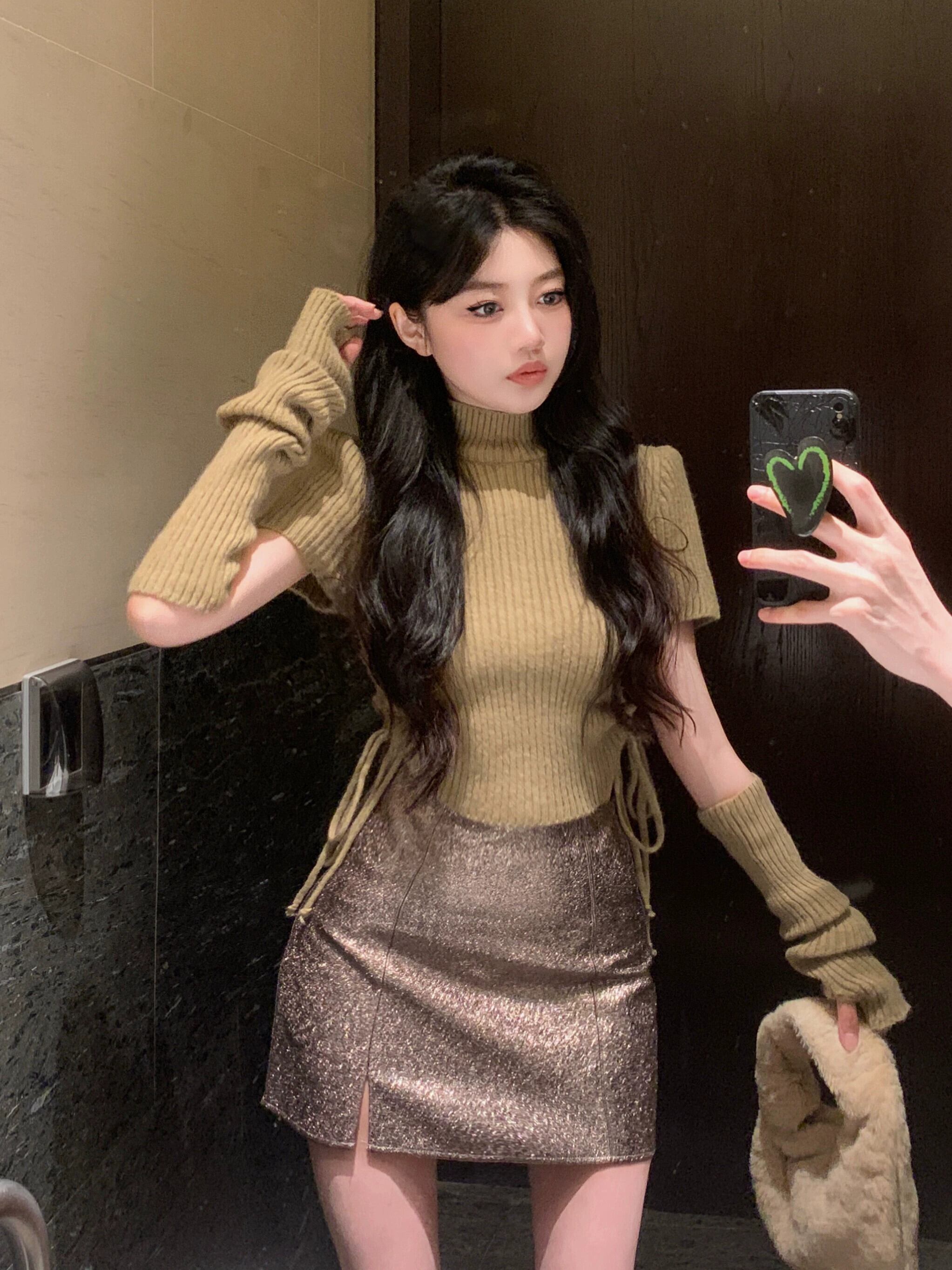 内側の赤いセーター、スリムなニットセーター、ハーフタートルネックショートトップ、2023年秋冬新作レディースボトリングシャツ レッド オータム 秋物 ウィンター 冬物 nana48113867384 | modepoisson