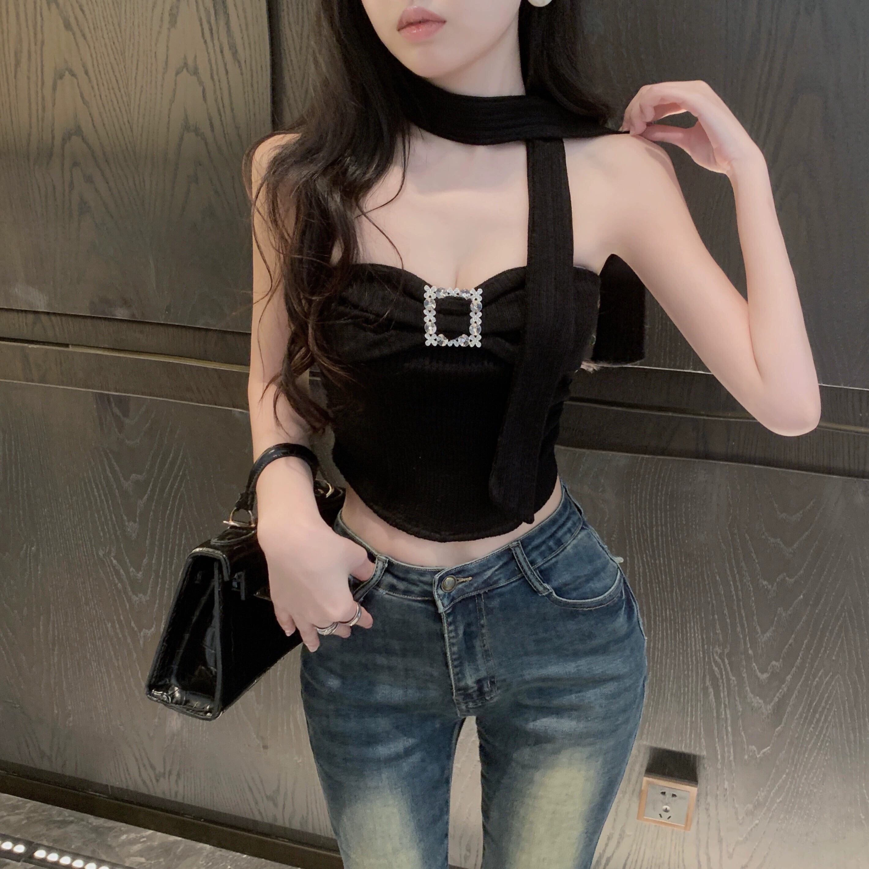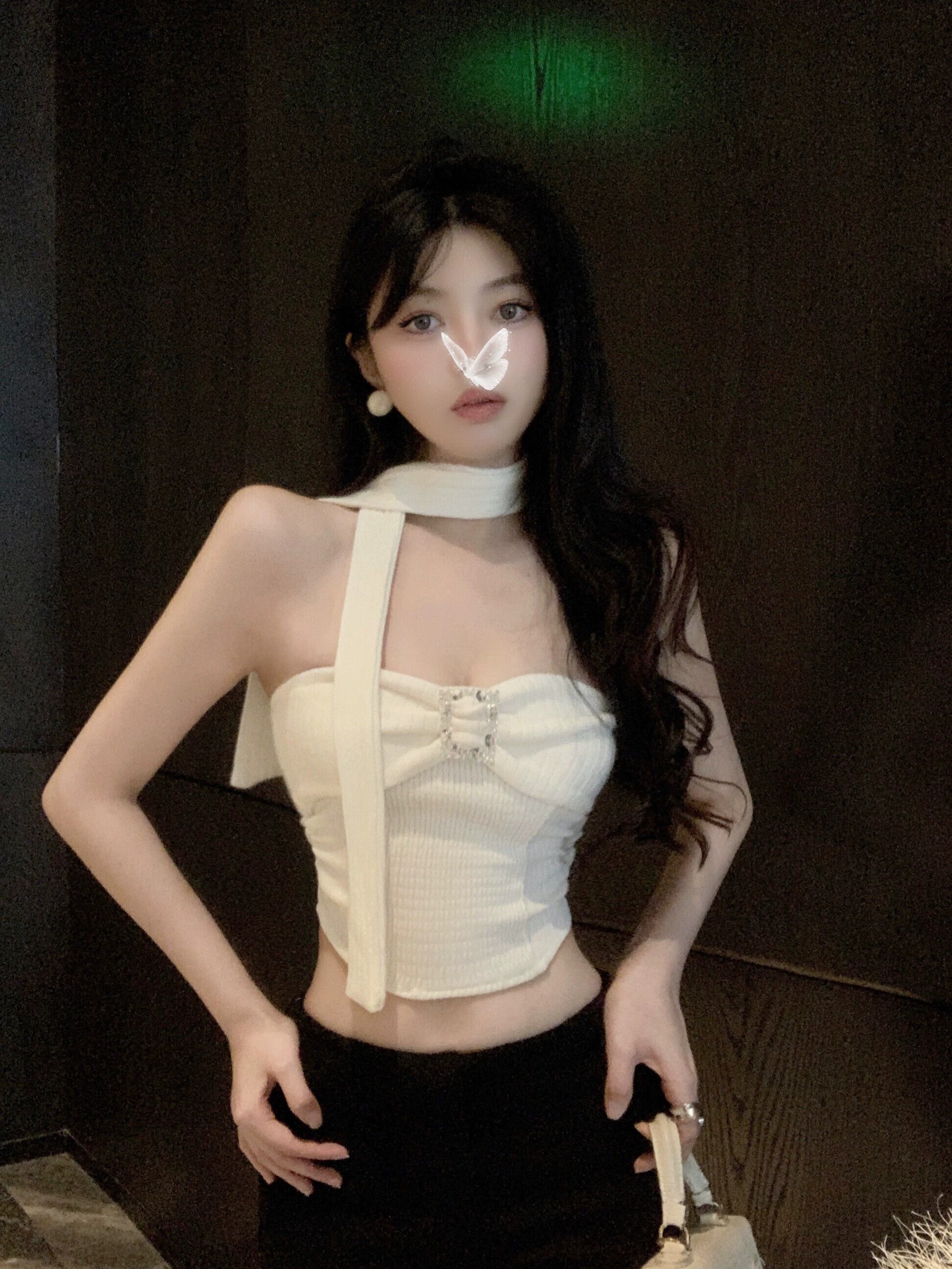 Pure Desire ホットガール セクシー チューブレス トップ ガールズ 秋と冬 ホワイト スリム フィット ショート ノースリーブ トップ アウター 半袖 ハーフスリーブ オータム 秋物 ウィンター 冬物 nana64283656443 | modepoisson