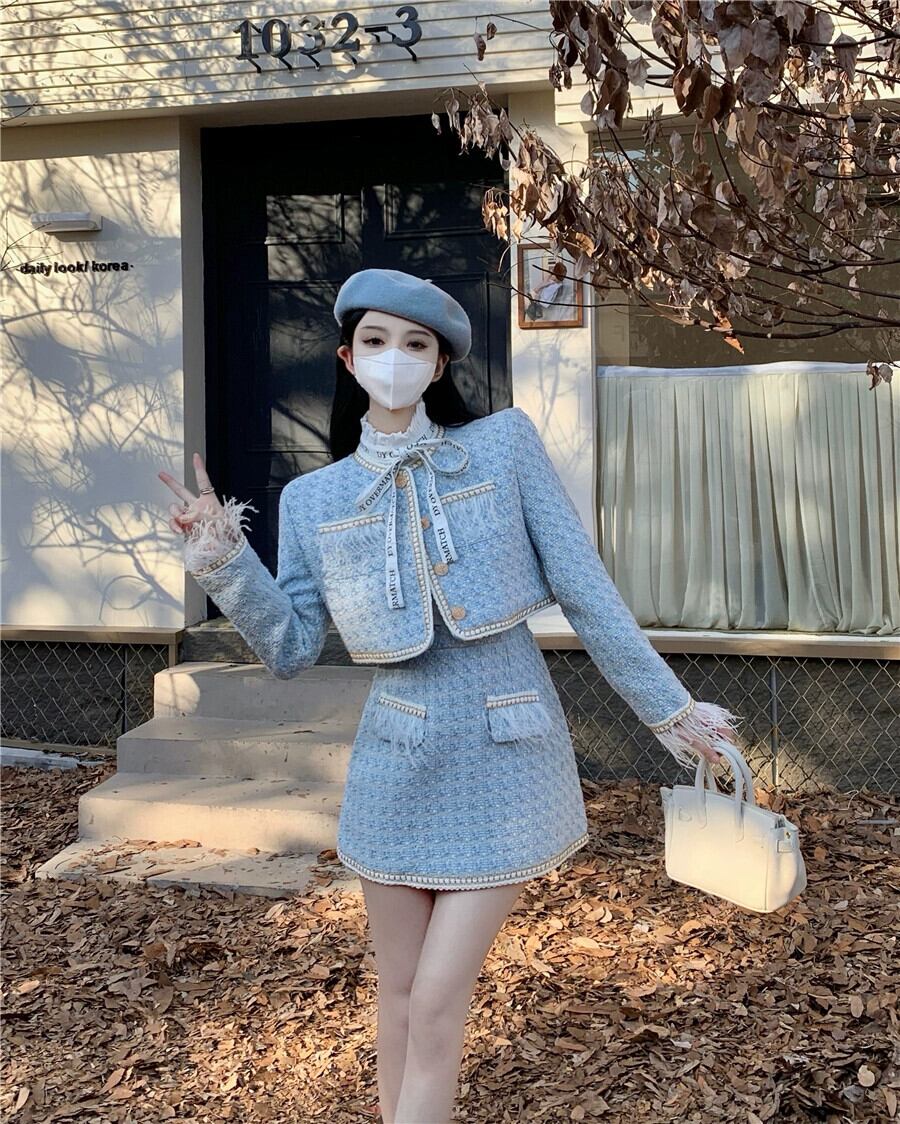 Xiao Xiangfengの美しいスーツスカート、フランス女性の気質、シャツ、ジャケット、ハーフレングスのショートスカート、秋冬のスリーピースレディーススーツ オータム 秋物 ウィンター 冬物 nana80421792842 | modepoisson
