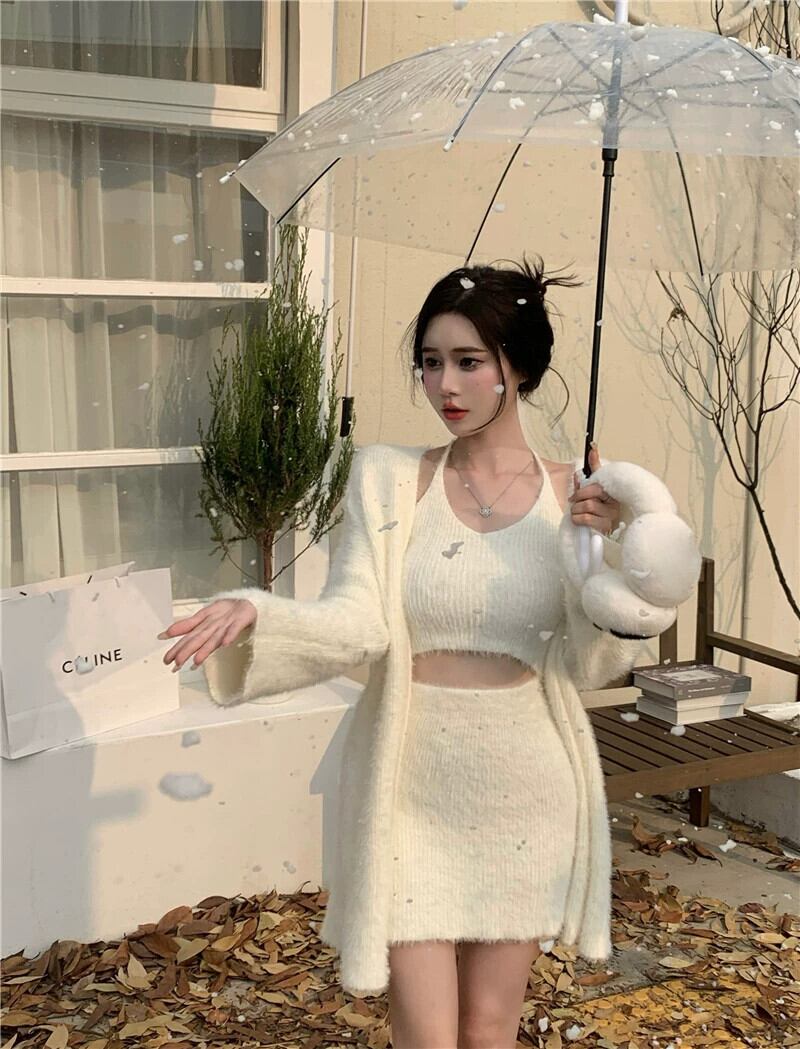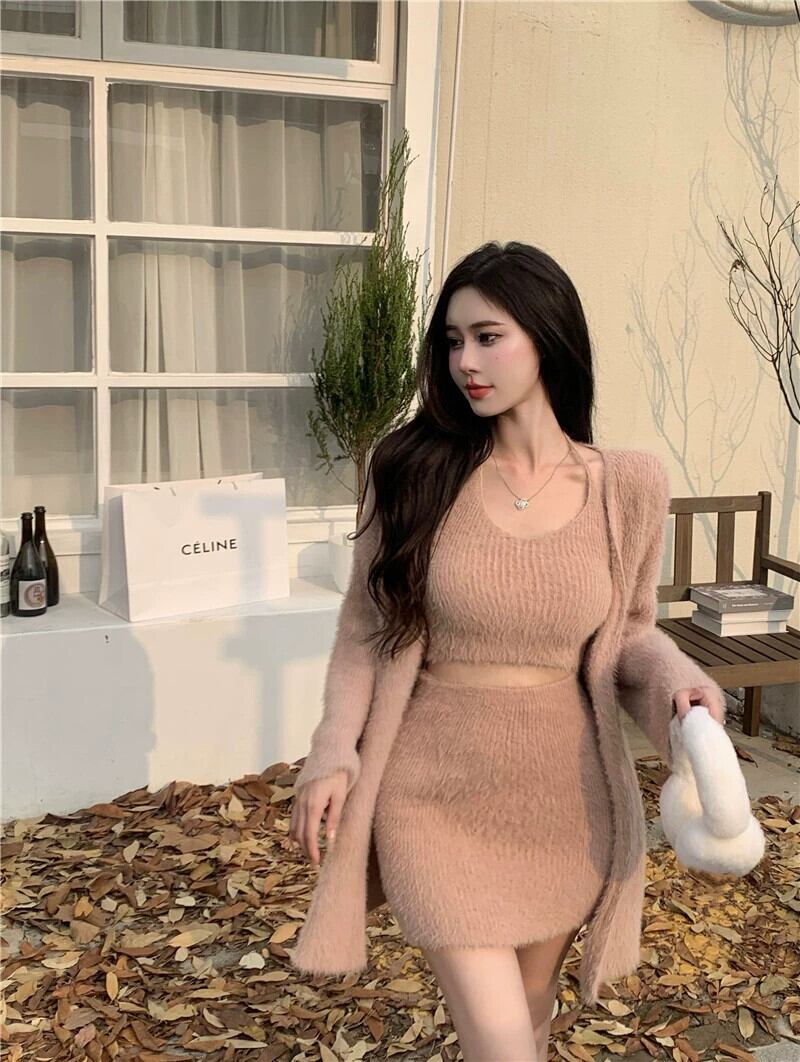 純粋な欲望スタイルの高級スーツ秋と冬のセーターカーディガンコートサスペンダーニットスカートハーフレングスヒップスカート 3 点セット女性 オータム 秋物 ウィンター 冬物 nana41094356690 | modepoisson