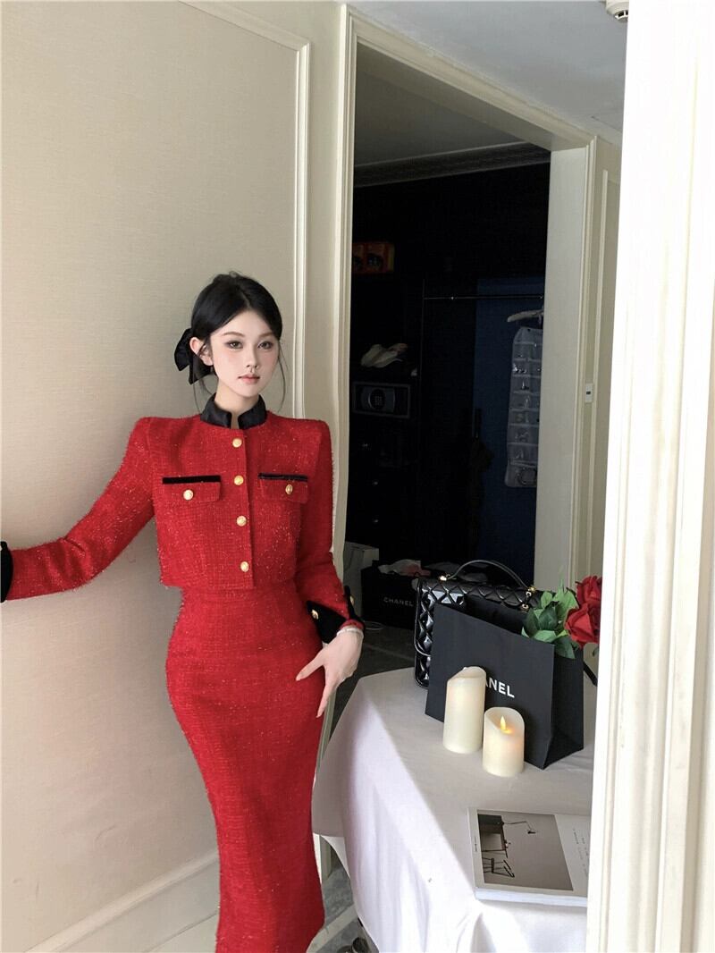 金持ちのお嬢様のスーツ フレンチスタイル レディース ショートコート ハイウエスト スカート 秋 小さな香り 2点セット レディース ハイウェスト オータム 秋物 nana93809519033 | modepoisson