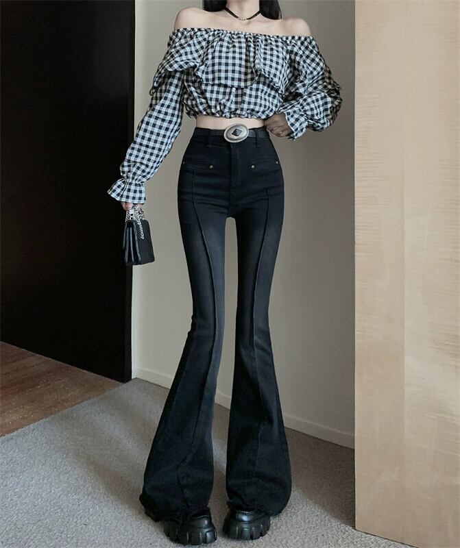 -ウエストマイクロフレアジーンズレディース秋ヨーロッパ商品2023新しいストレートレッグパンツタイトレトロスリムパンツ オータム 秋物 ヨーロピアン nana11740784029 | modepoisson