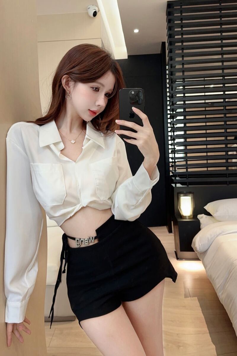 -エンドシャツ、ハイウエストショートパンツ、ユニークなトップス、超格好良いスーツの女性、2023秋の新しいファッションツーピースセット オータム 秋物 ショーツ ブルマー nana86637605599 | modepoisson