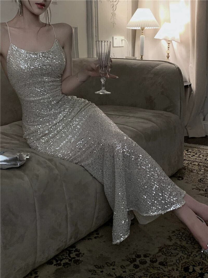 フレンチドレスサスペンダードレス、ハイエンドの軽い高級ニッチロングスカートスパンコール付きスリムフィッシュテールスカート女性秋と冬の オータム 秋物 ウィンター 冬物 nana37901000518 | modepoisson