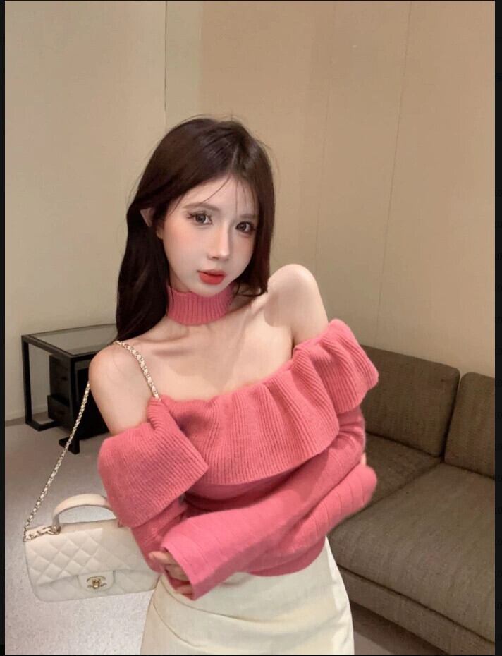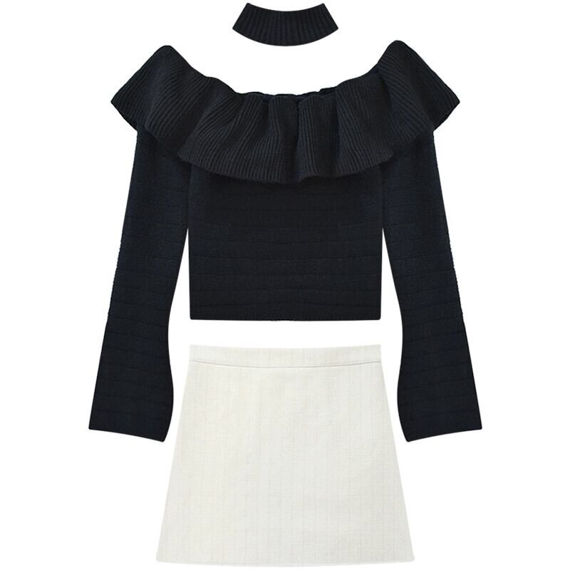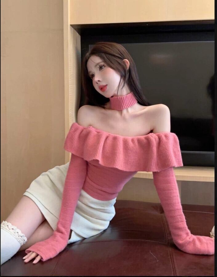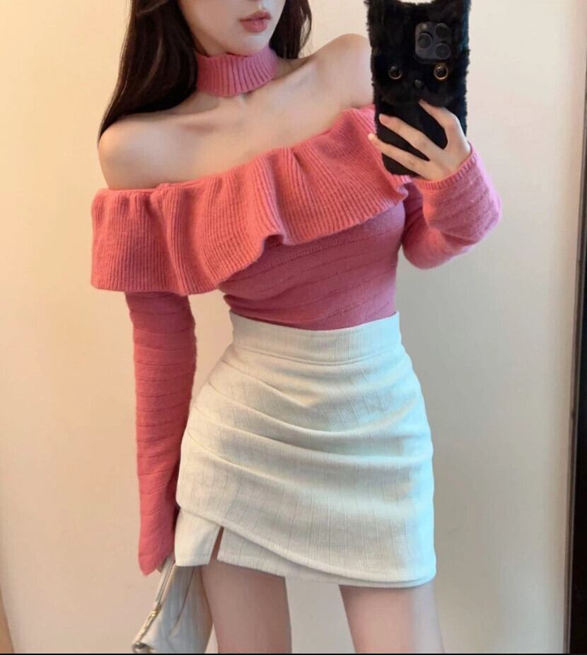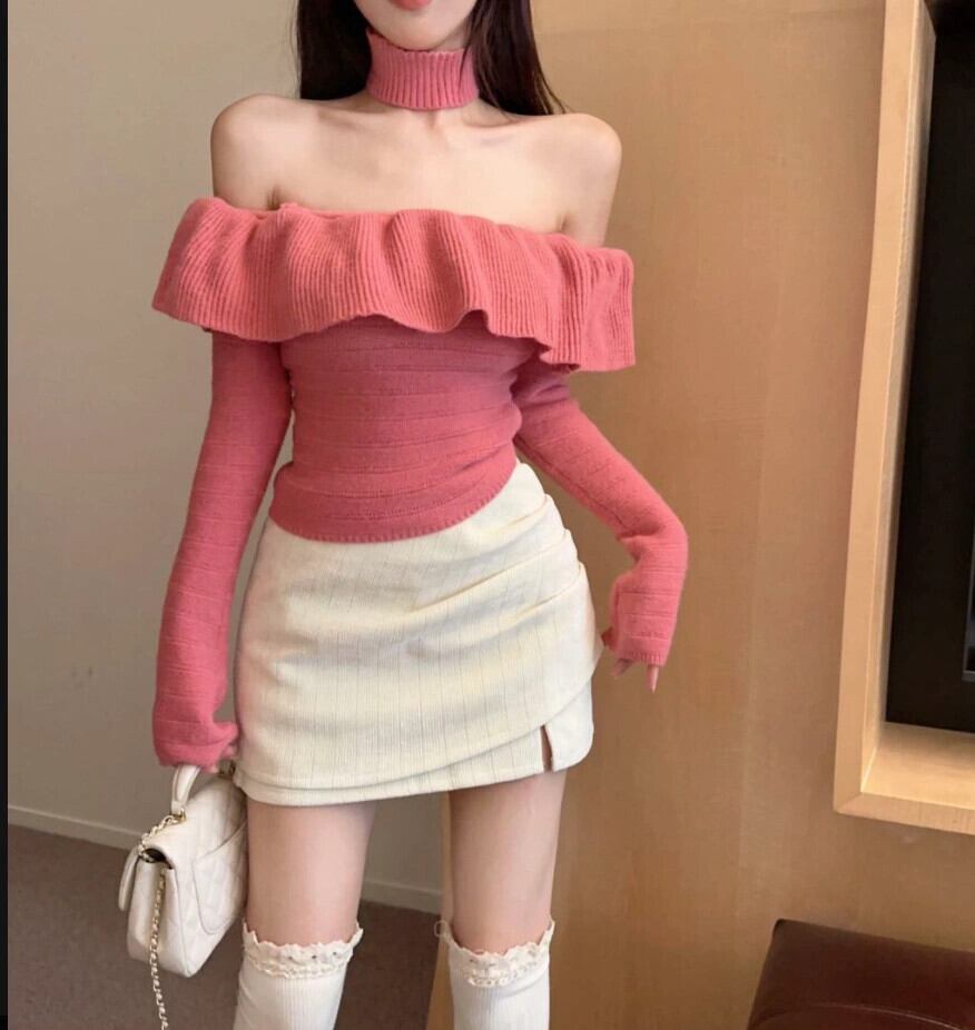 長袖フリルワンショルダーセーターレディース、秋冬ボトムシャツ、スリムフィットセーター、デザイン付きニッチトップ ロング オータム 秋物 ウィンター 冬物 nana36638426699 | modepoisson